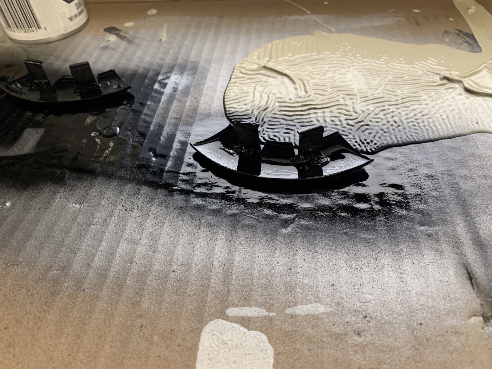 Painted all the interior trim for the black car..... using OG interior trim on the B/W car....