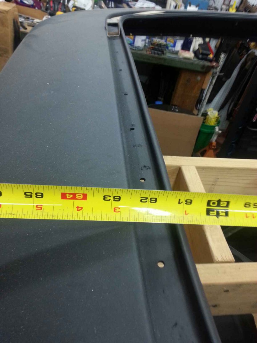 I posted a thread on Monday and posted on 3 other sites (one pertaining strictly to model 40's) and got no response. I did not post on this thread though. http://www.jalopyjournal.com/forum/threads/34-sedan-soft-top-dimensions.1003344/#post-11317622 I wasn't looking for the actual dimensions of the hole (though it is nice to have) I was looking for placement. Like how far from the edge of the windshield (center) does the hole start? And how far from the edge of the back window (center) to the edge of the opening and the same with the sides. I took the dimension for the sides at the hinge. Thanks for the help.