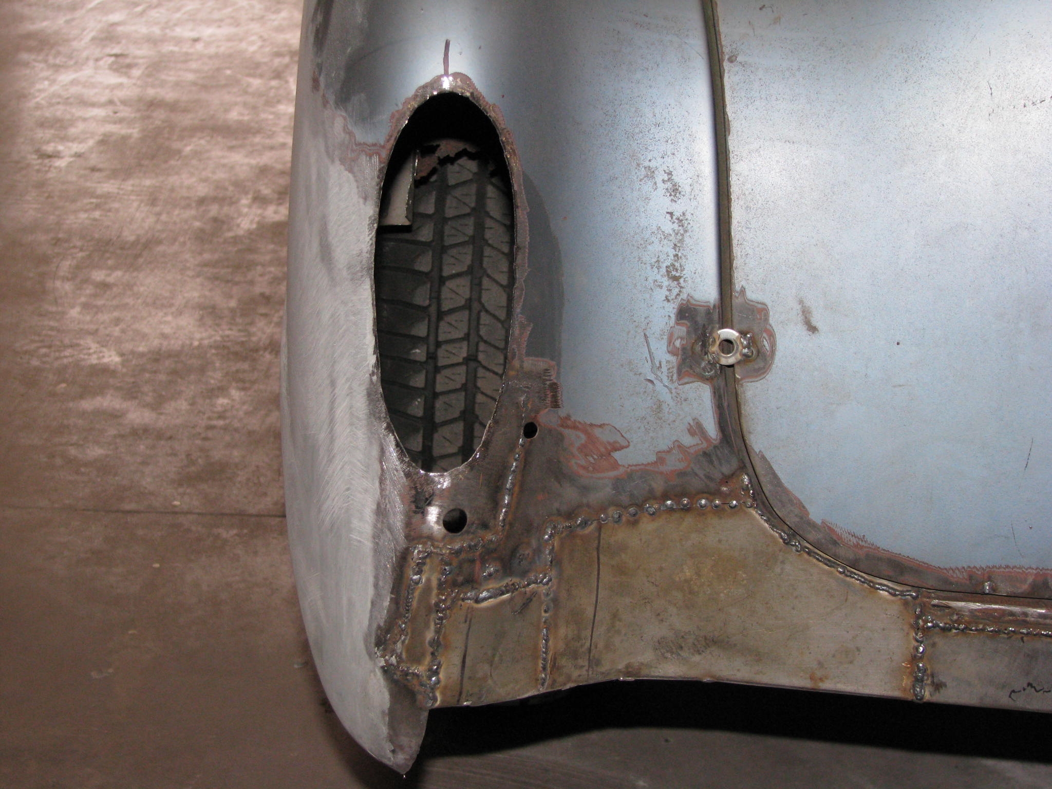 A little more done filled the gas door in and put on a body reveal line. Fit a wheelwell rear piece . Now for lots of weldind and grinding . You cant tell in the picture but I have major warpage issues around the gas door opening . There are multiple panel in this one area and that causes a major issue . They all have to be welded and they all need to be ground. This is tedious stuff .