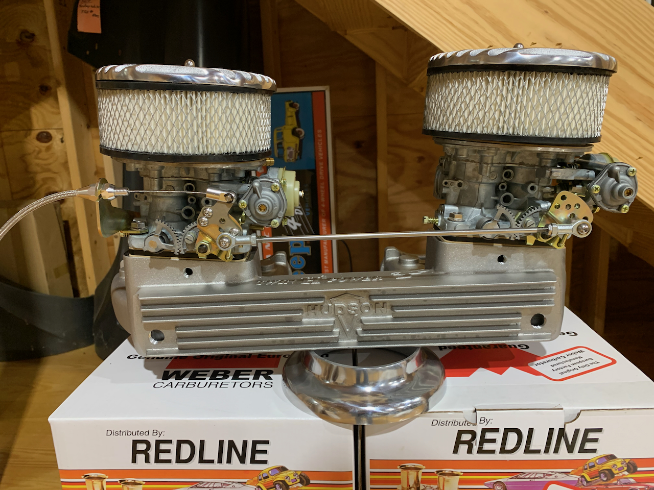 We finally have Hudsons running with our new finned Twin Vortex chambered head and 2x2 intake with dual Weber DGESs up and running. Here are some photos. A video if available here: https://www.facebook.com/share/p/1HuGBqponB/