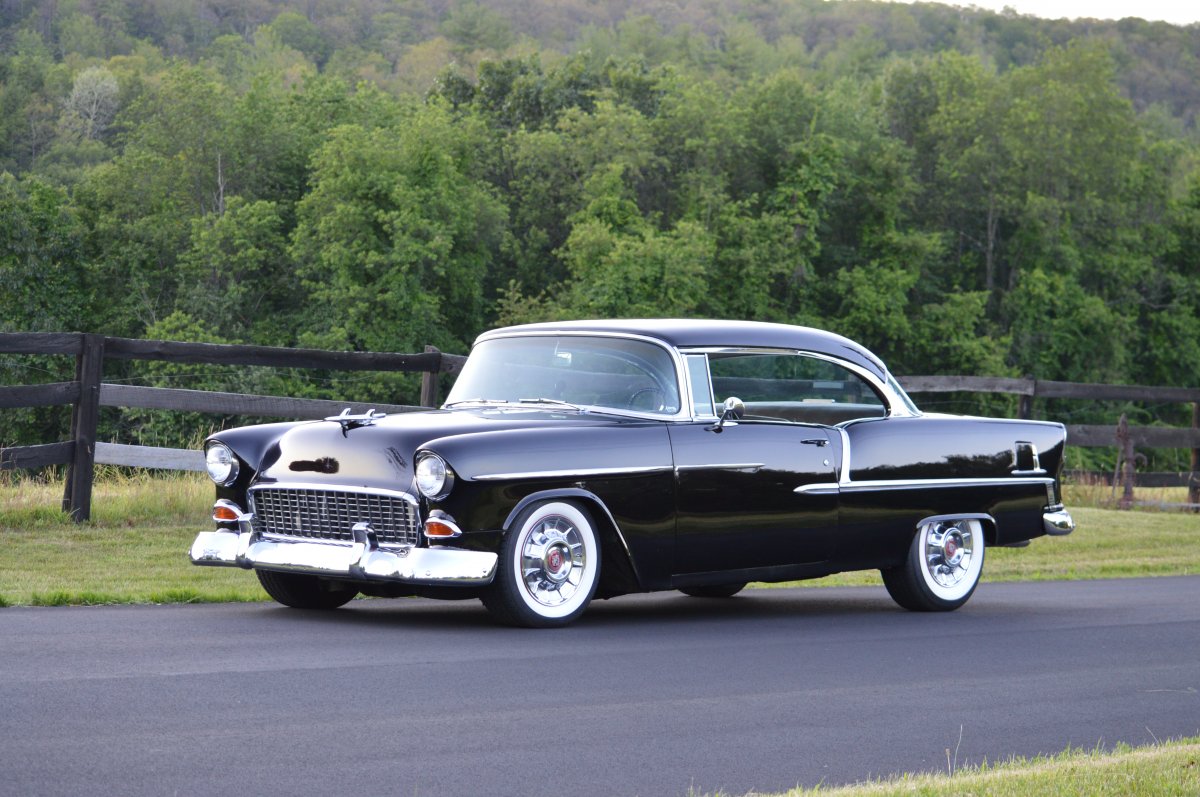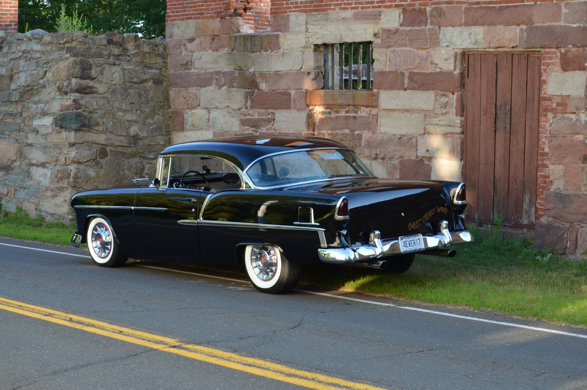 55 Bel Air, older paint but in great shape. 383 small block, Muncie 4 speed, Patriot coated headers, Patriot mandrel stainless exhaust, Vintage Air heat/ac, monster aluminum radiator, power steering and brakes, Heidts dropped spindles, 1" lowered front springs, Diamondback wide whites, powder coated steelies and 57 Caddy caps. Paint is a black cherry, black on a cloudy day, red pearl in the sun. She isn't perfect, but a really nice cruiser. Willing to trade plus cash to me for a C10 or F100 pick up.