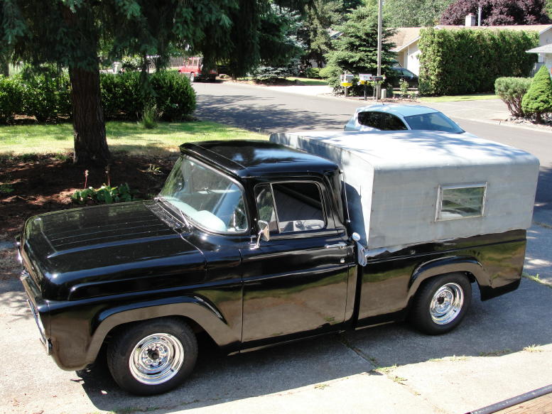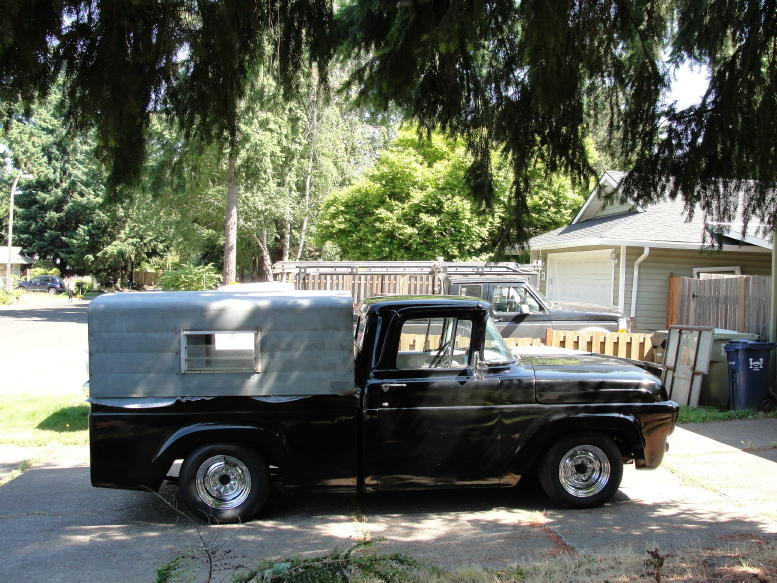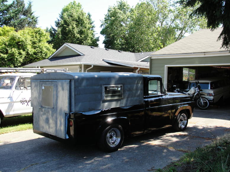 Here's ours! Just had it given to us in April of this year. Runs but on our first trip we figured out the Ford 390 is worn out. So I am in the process of installing a 289 Studebaker V8 and an automatic transmission to make towing the Avanti easier. Also gearing down to 4.10's from 4.88's. Here the inside. Here is what we tow with it. Here is a picture taken two weekends ago in Buellton. These cool people came by dressed in period garb so we got them to pose with the camper. They loved it. So did a whole lot of other people. Enjoy. Dan