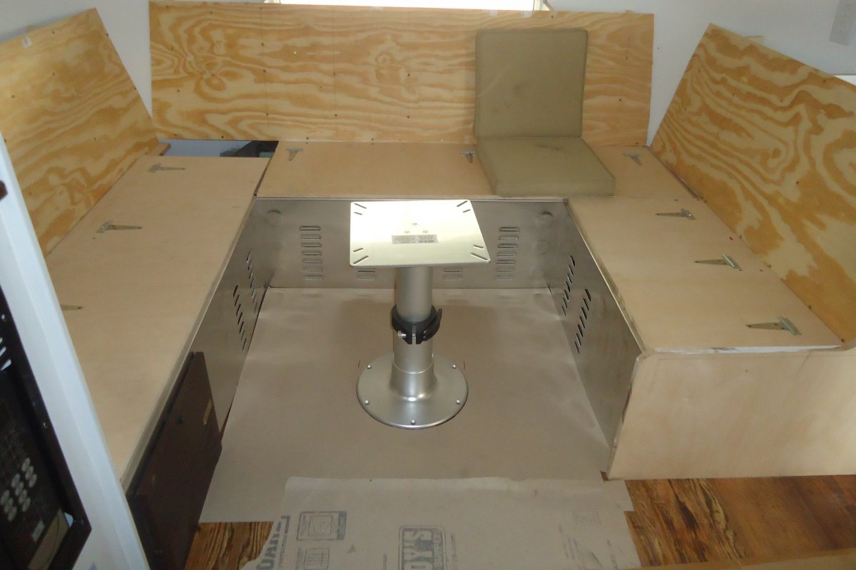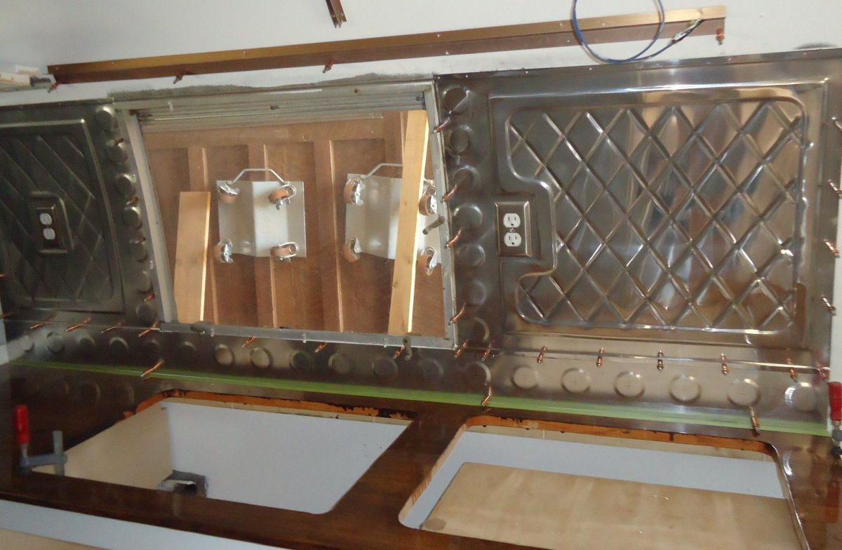 Been working hard on our old Airstream. Beadrolled a backsplash for the new cabinets and got the dinette roughed in . Hope to have her finished by x-mas .