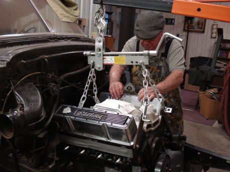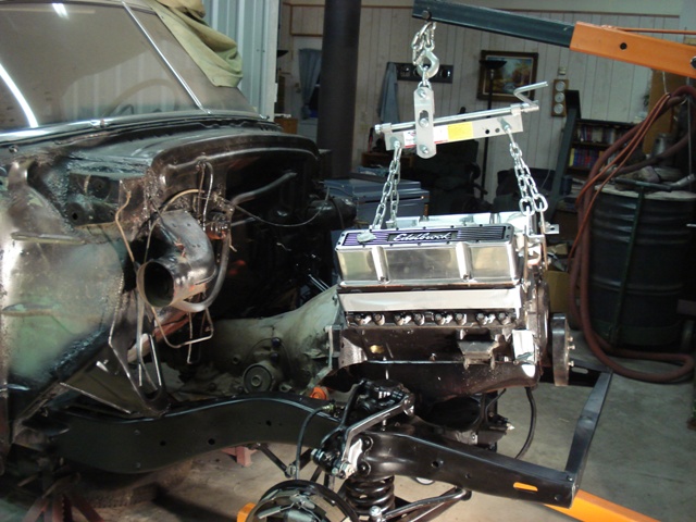 Hey guys! Have any of you put a sbc in your 49 or 50? Im trying to figure outt he best way to moount it in the bay! I have a hurst mount on the front of the block and I was wondering if anyone else might possibly have it set up the same!Let me know! Thanks
