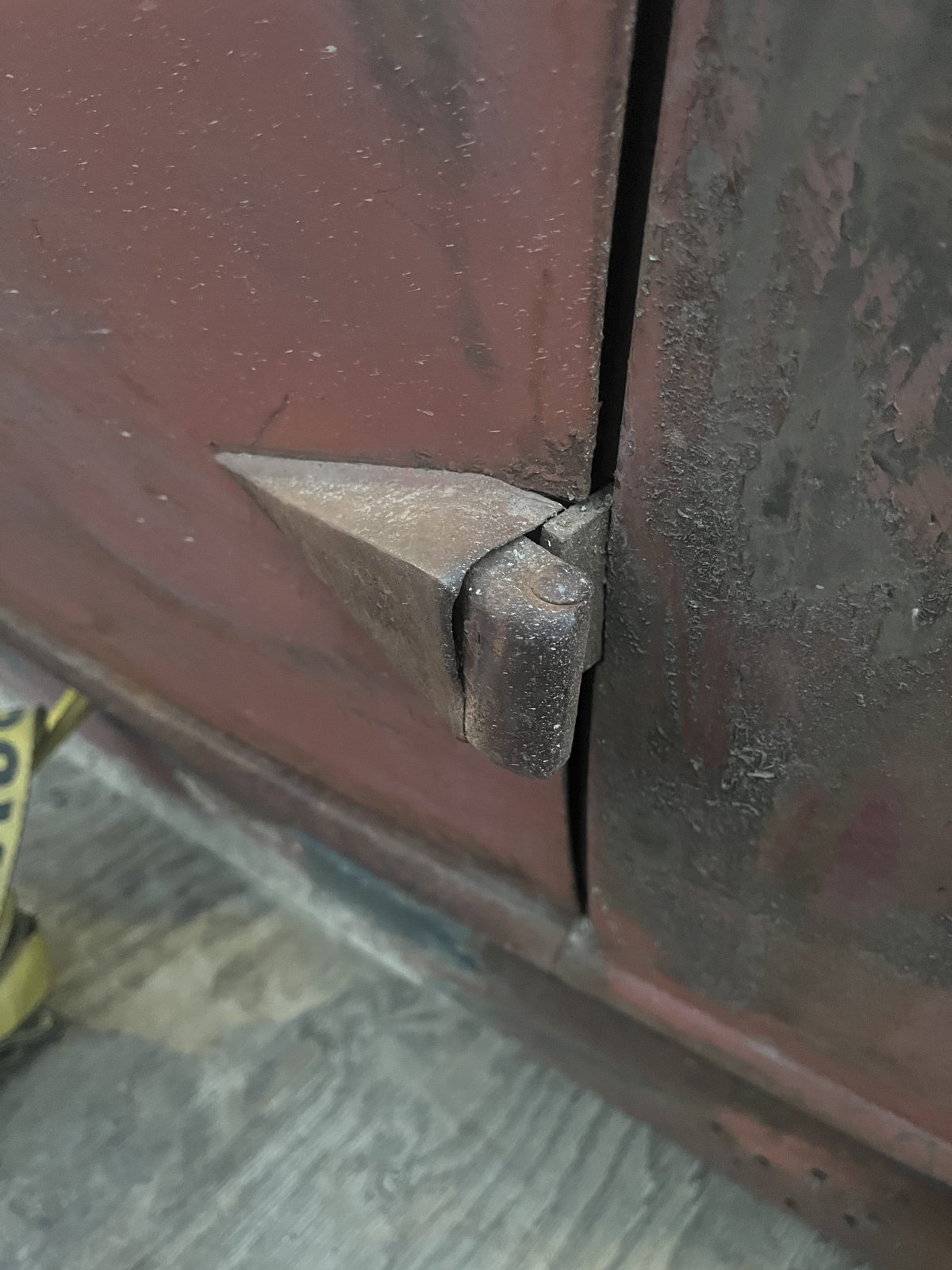 When I get a chance I will post a photo of the “spats” that are on the lower door hinges. They are very distinctive and I hope they jog someone’s memory.