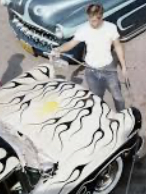 I agree with @tb33anda3rd, those flames are crude and remind me of my licks doodled through my school notebooks.. I grown fond of the early flames with their tendency to be blocky, monotone and raw especially by today's norm. If I had to pick a favorite flame job, it's just on the border of HAMB era correctness.. Hollingsworth's '57 Nomad