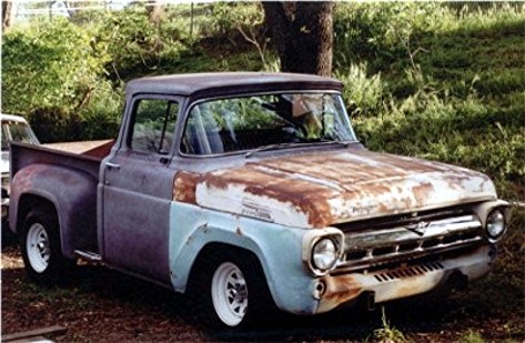 My '57 Effie project's getting so close to the paint shop, thought I'd offer up a Before pic for your photo shop'ing pleasure. This was how I bought 'er in '01, that's the previous owner's driveway. I'm wondering what it'll look like in dark Burgundy with chrome reverse wheels and a Model A-style visor. Can't decide about the visor, but am really tempted. Also, what ideas do you have? OGNC, thanks again for that web link on that radical '57, I keep going back to it.
