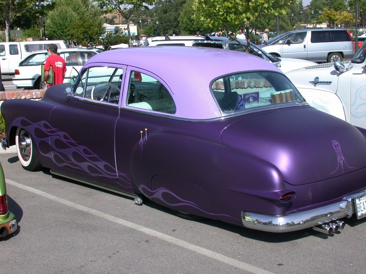 Definitely a lace roof. Hand-painted pink and red and burgundy roses down the side. Stained-glass tail-lights...