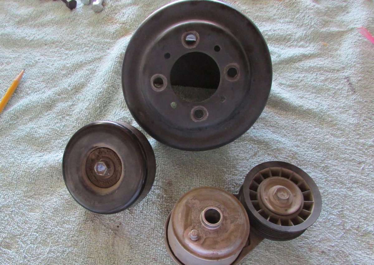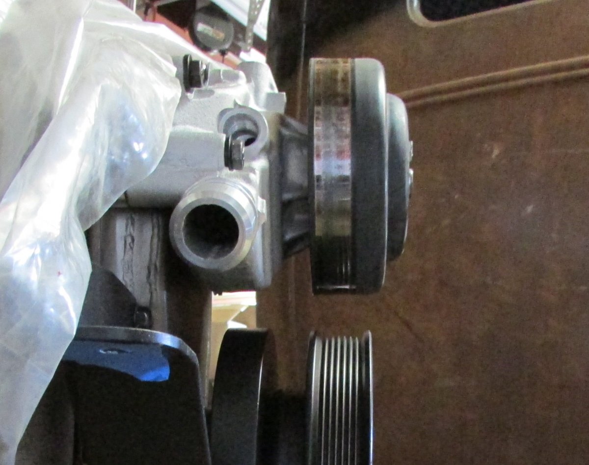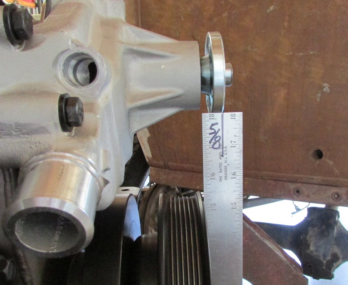 Tomorrow doing the wrecking yard to try to score a smooth steel offset pulley that will allow alignment of the serpentine belt from the SBM crank pulley.