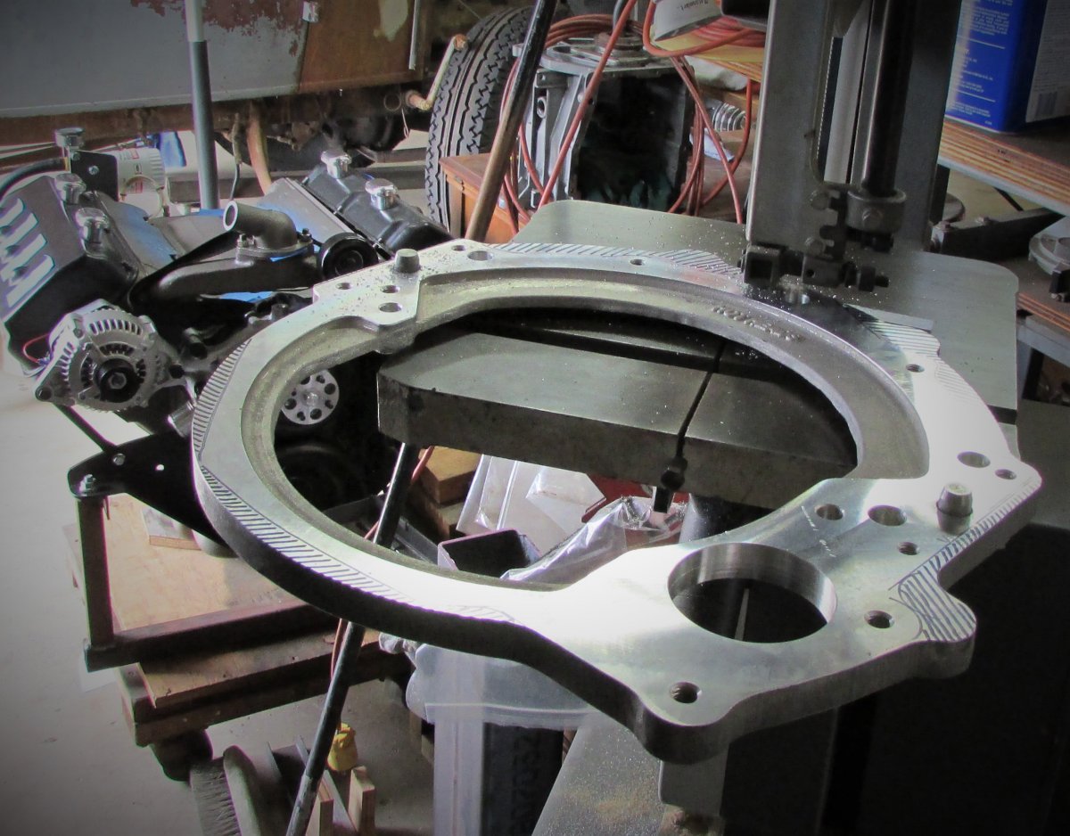 Progress been slow over the Holidays. Finally got the freshly balanced clutch assembly installed and buttoned up. I decided to set the engine in the newly vacated "A" bay just for fun. Plus, it yields a bit more floor space and gets it up where I can work on it without bending over.
