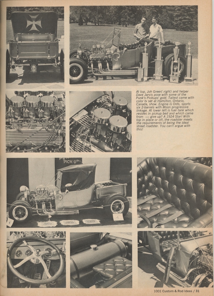 Let's visit 1966 for some T action - these are from the Spring, '67 issue of 1001 Custom & Rod Ideas magazine. First up, Lee Everett's T: