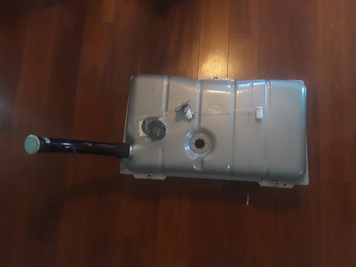 Bob Drakes stuff showed up today. New tank, filler neck, gas cap, sender unit, and assorted assembly parts. Should be all ready to go in.