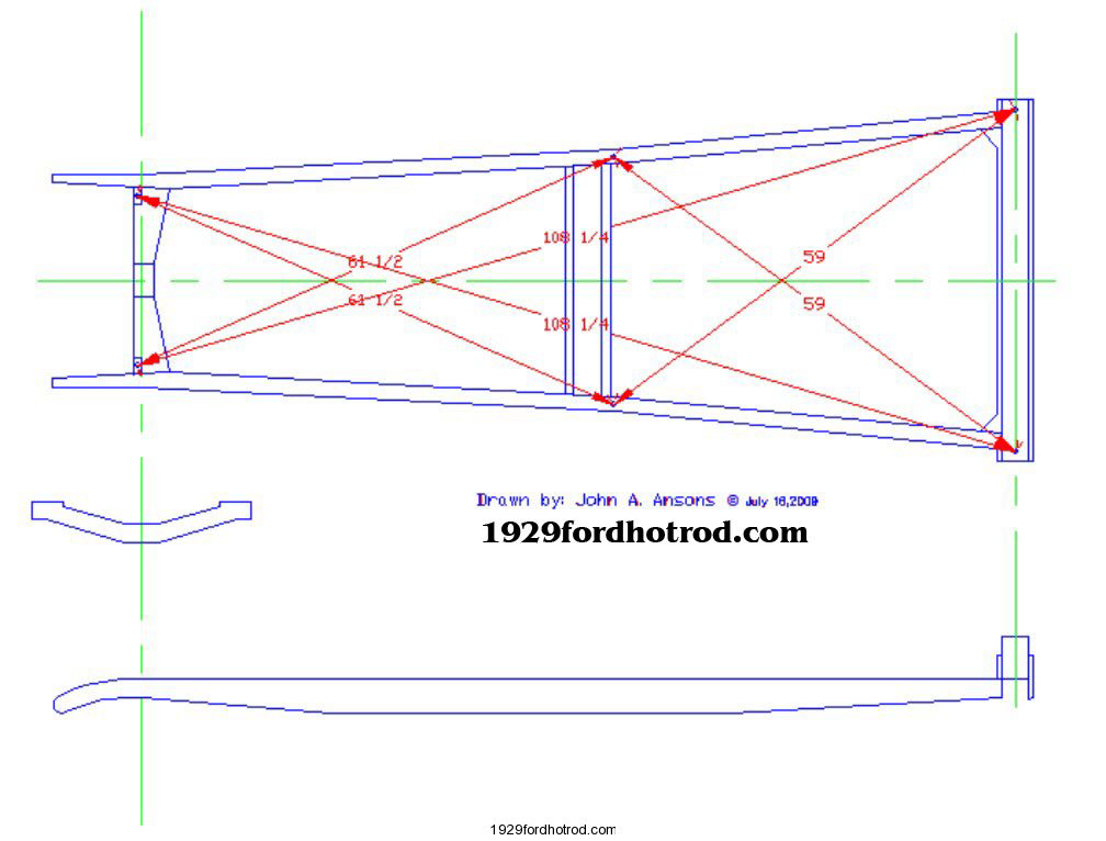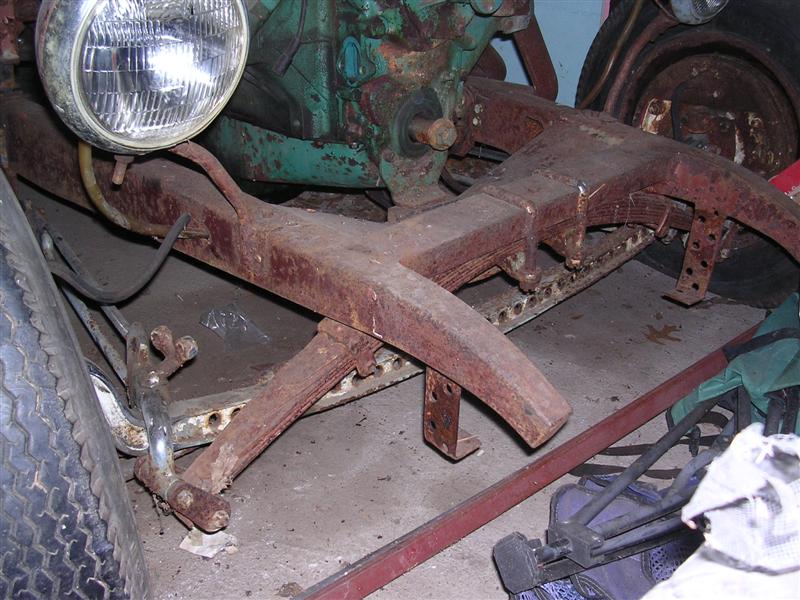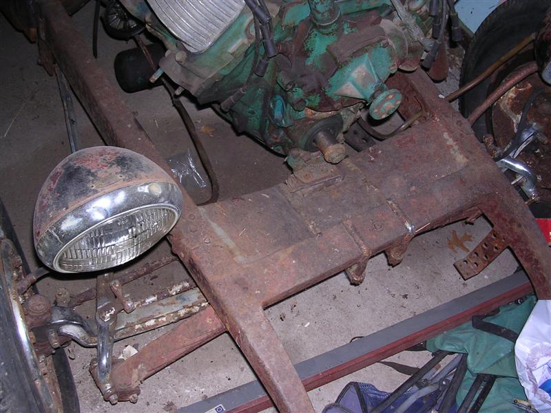 It's a Model A frame that's been boogered up bad. Cheapest way out? Get a good, stock, original "A" frame (150 bucks +/- ), box it and start over. You don't need "K" members and all that crap either ($$$$). Pull it out and sell it. That motor is 85 hp stock , and if you spend 5 grand on machine work and parts, it might put out 100hp. They are torq monsters , but short on performance without taking out a second mortgage. Put in a center crossmember to hang the tranny, throw in some bracing and you're off to the races. That said , with a Model "A" (which weighs nothing), that's a fine motor to use , and a great start to a cool hot rod. Believe none of what you read and half of what you see ; in other words, all advice is well intended , but pick and choose what works best for you. Where in Mass. are you? Lots of HAMBers in Mass! Good luck with it- I'm following!