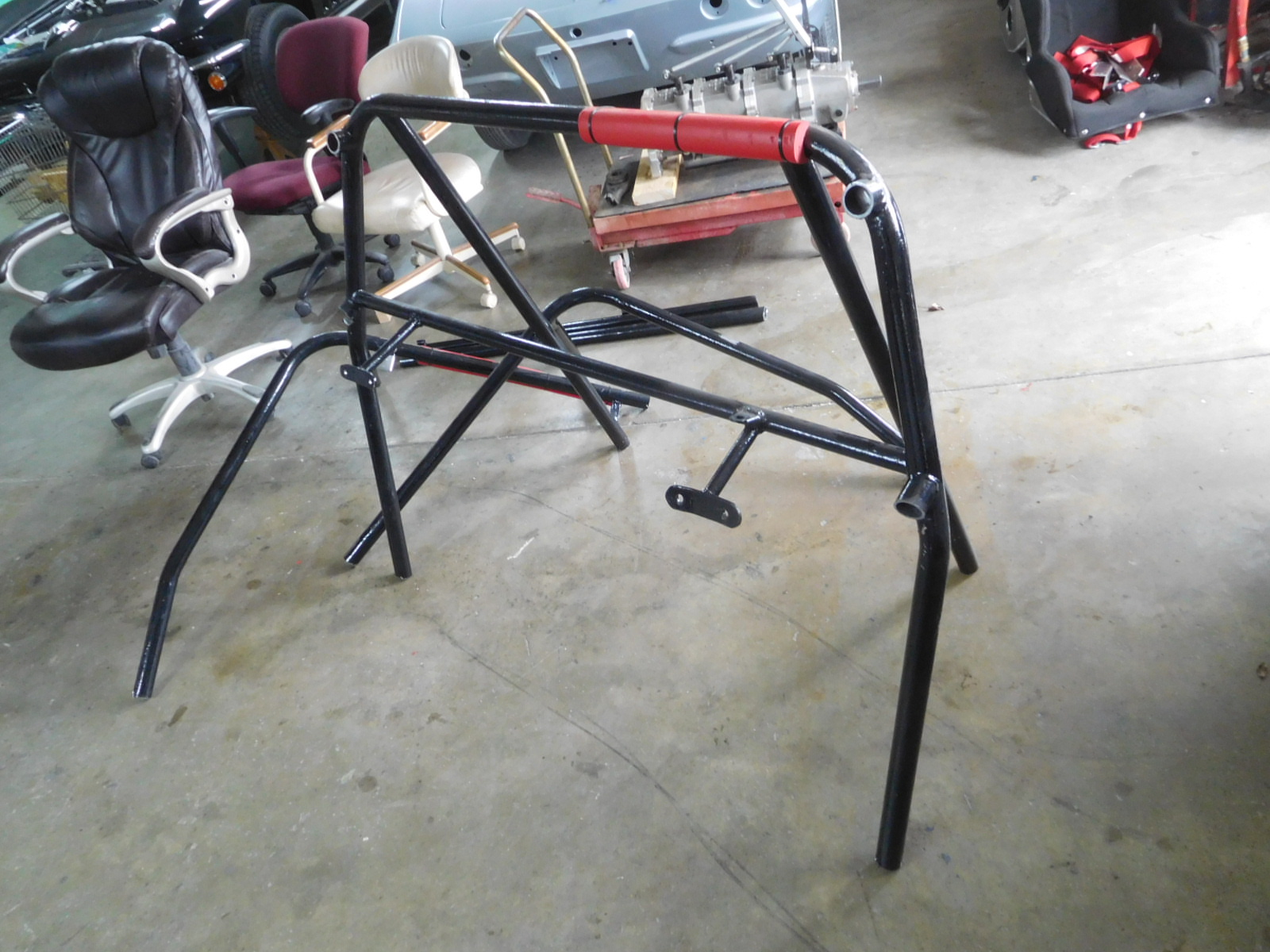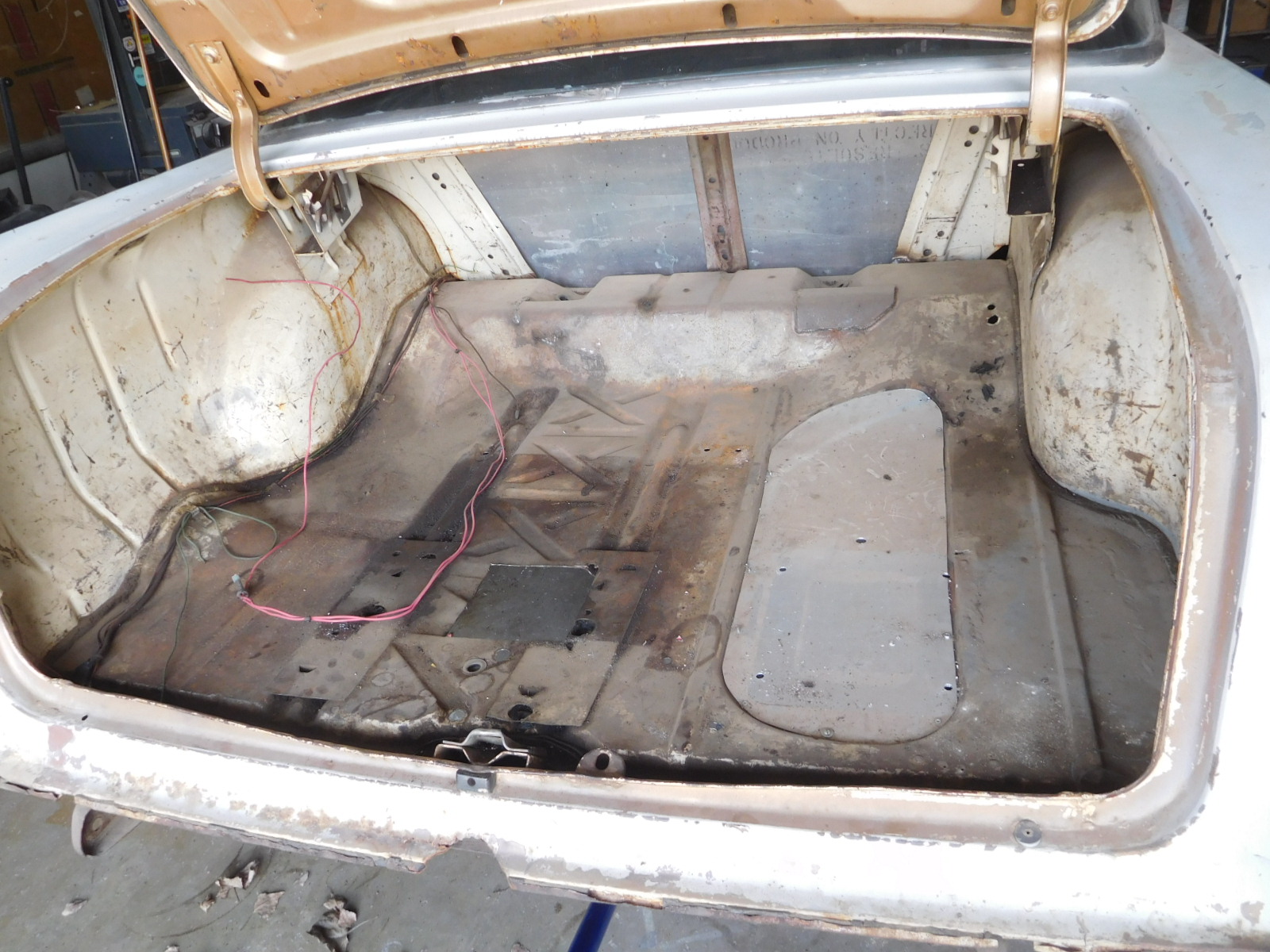 It looks like I just sold the Lenco transmission for $5000. I'm down to $19,000 for the car now. Yesterday I pulled the fuel cell out of the trunk and removed the electric fuel pump and battery box. Then I cut the rollbar outriggers off the frame and ground it down. DSCN4181[1].JPG