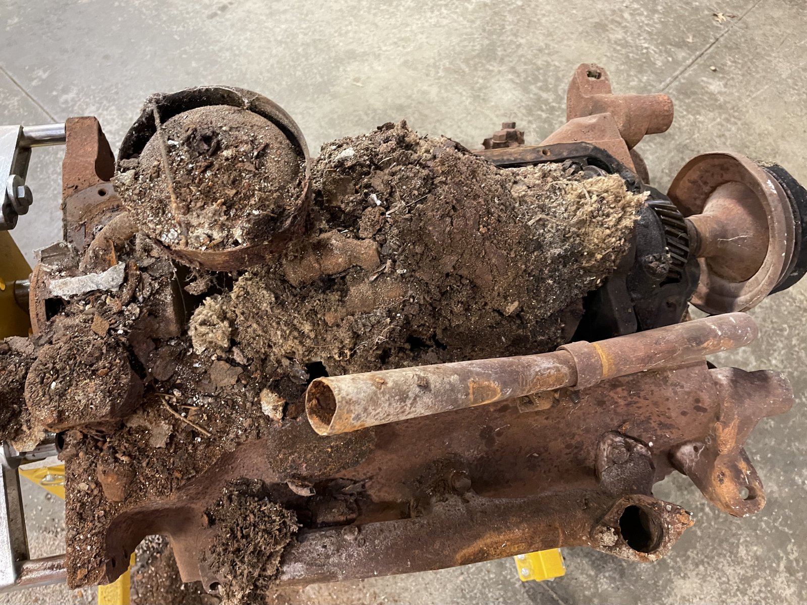 Haven’t had an update for a while. The frame is painted, and dad is working on the front and rear suspension now. Here is a picture of the bushing that was a real booger to remove. One step at a time…