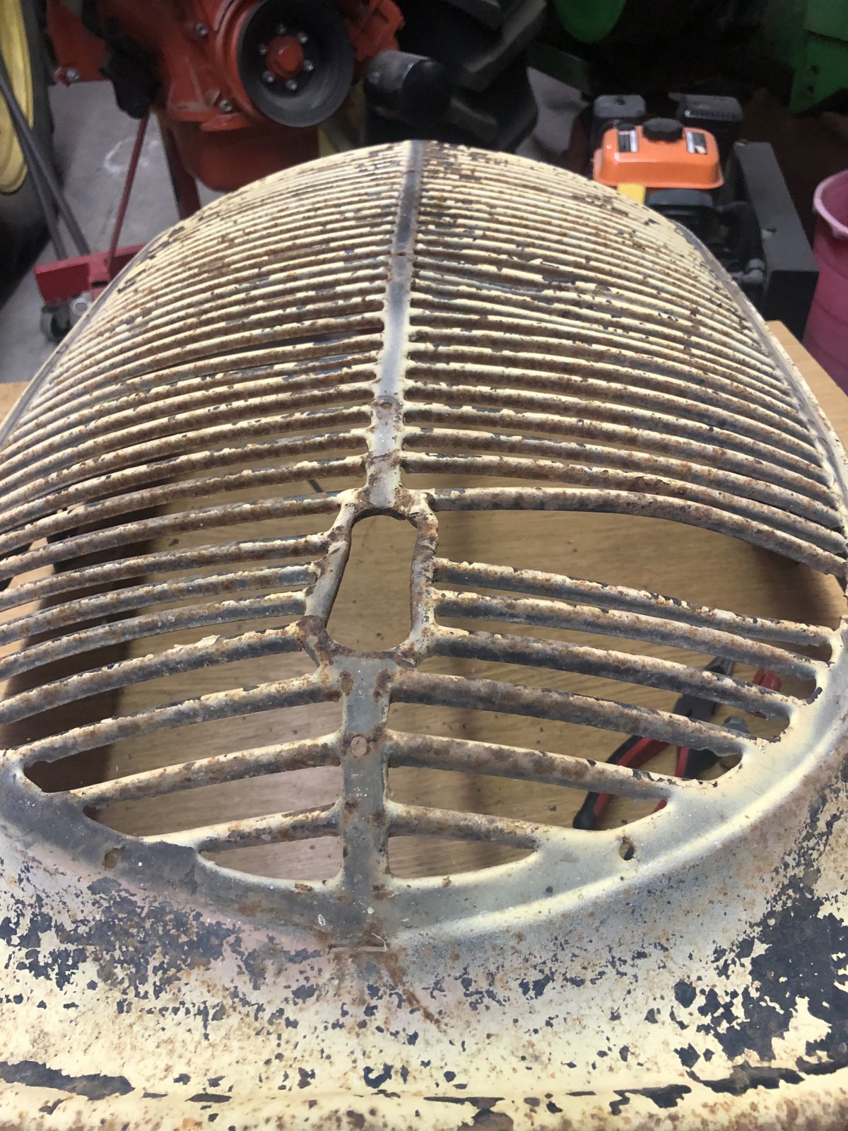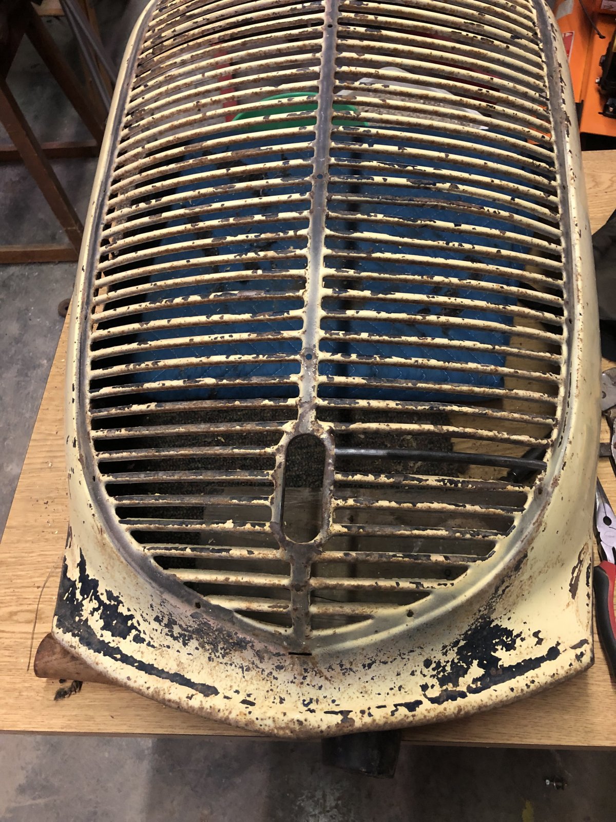Here’s some more pictures. The grille was missing a bar. Dad made one out of a piece of scrap. I thought he did a good job. Next is the frame and suspension rebuild. The engine will follow that. Dad bought a rebuilt transmission from a guy a while back, so that’s covered.