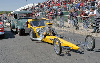 Ivo did it in style at the '65 nationals at Indy......brand new Caddy with fueler-matching metalflake orange paint and torque-thrusts!