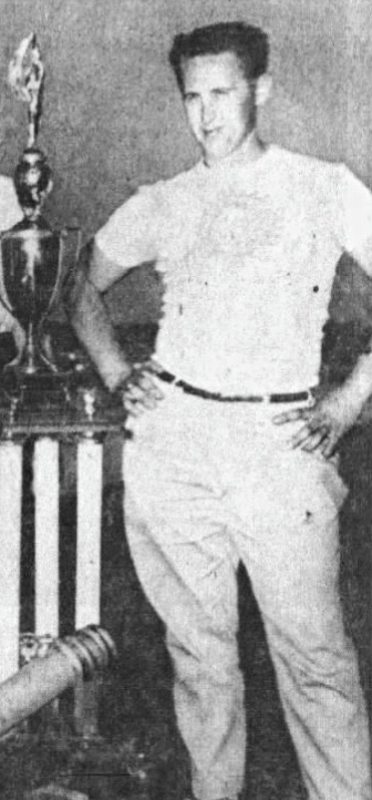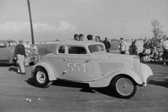 The above grainy newspaper photo appeared in Drag News (11/11/55), reporting on the race at Colton on October 30. He won the B Fuel Competition Coupe, but broke his axle while going through the traps doing 110 mph during eliminations.