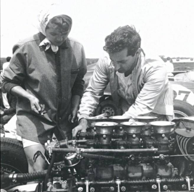 Ed stands up in the cockpit of Swamp Rat 1 after Don raced it at Chester in November 1957.