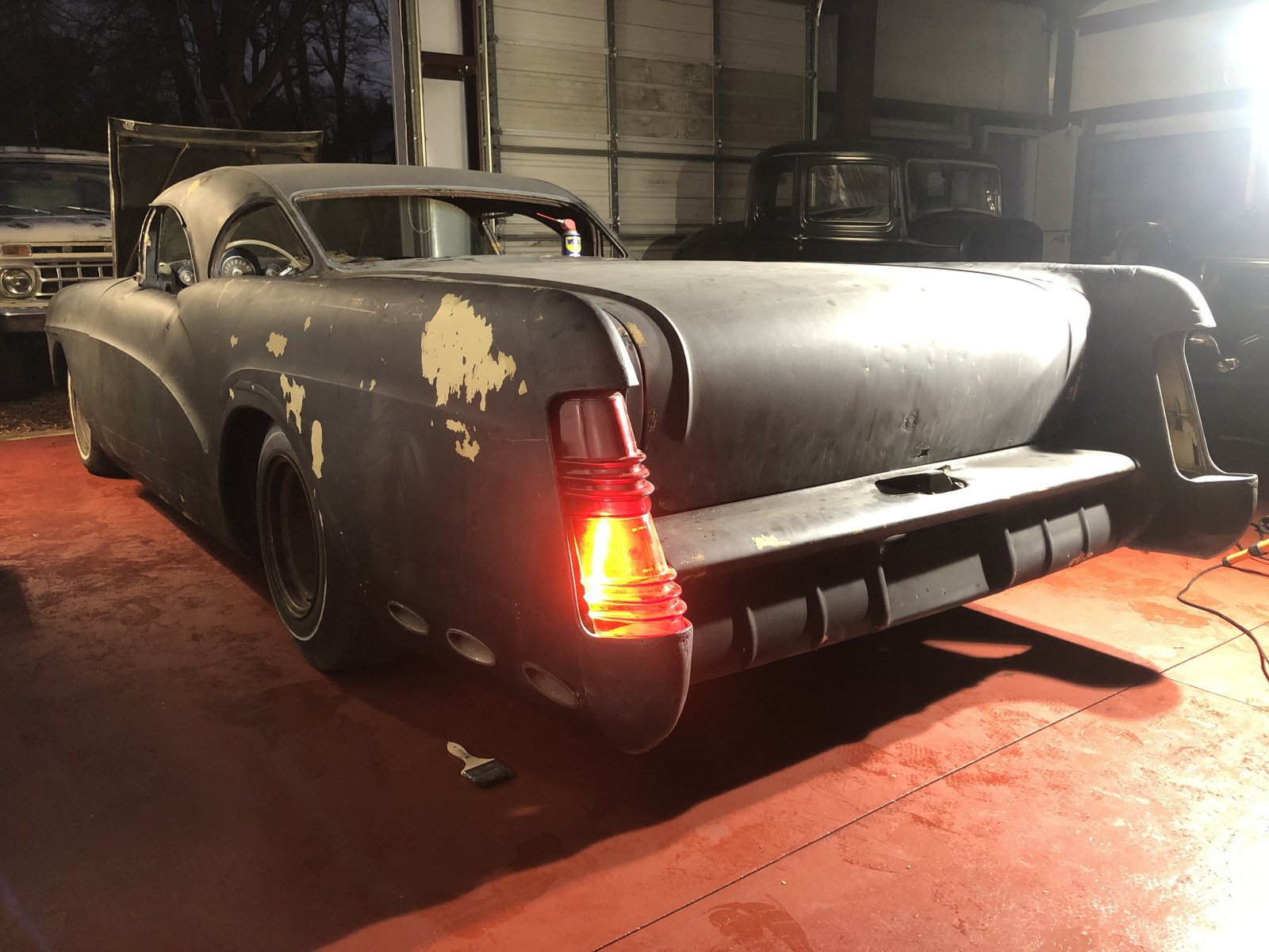 The rear of the fenders look like they want a '54 Mercury tail light, but the overall feel seems to want the original '57 Buick lights. Either that or a set of '57 Packard Clipper tail lights.