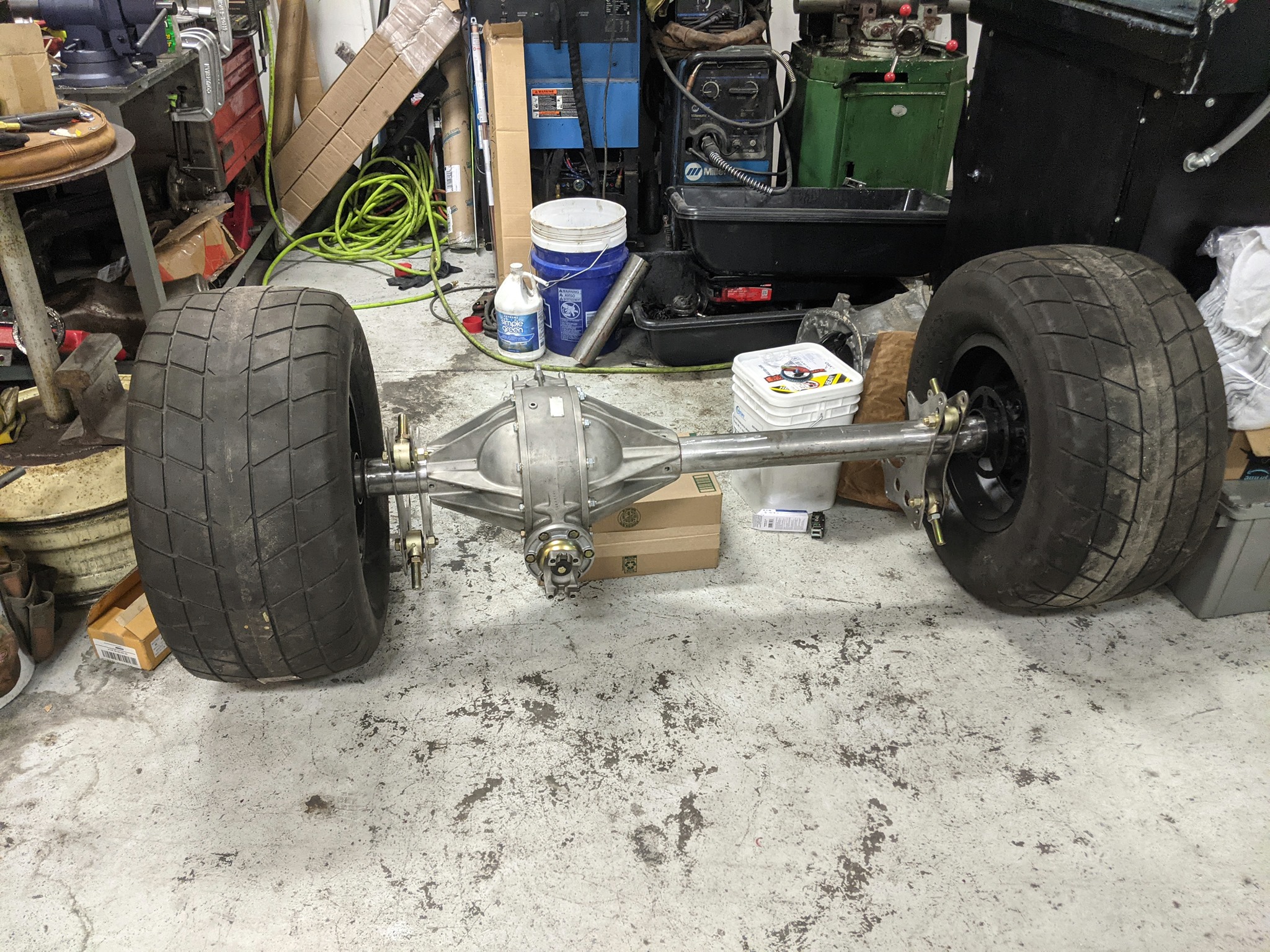 I had a chance to get a reverse rotation SBC out of a boat awhile back and was envisioning running a transmission or short drive line under or over the rear end flipped around with a off set diff for clearance into a gear box made to hold a set of quick change gears with one gear connected to the back ward diff . kind of like a V drive boat .. Likely a stupid idea but I was thinking hmmmmmmmo_O