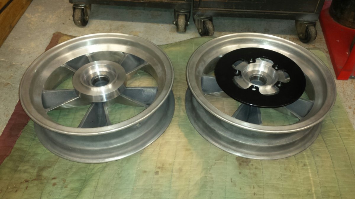 Its all done. I hope all these pics help out anyone that wants to adapt brakes to a wheel that was not designed to have them. I now have wheels that are safe and rule compliant. Tim harris did a outstanding job. He was also kind enough to stop his work to take all of the pics. As a bonus he included his drawings when he sent the wheels back. Now the wheels go back to the polisher to finish them