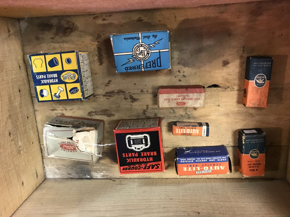 How about some man cave decorations. I always hit thrift stores, antique stores, resale shops, ect. with the wife. She decorated the house, I do my shop. I won’t pay more than a buck or two for things though. I found this stuff buried in a corner at a huge old barn that sold antiques. The owner sold each item between $.50 and $1. All have parts in them, some the originals. The Ford spark plug box has 4 plugs inside each in their own little box, and the plugs.