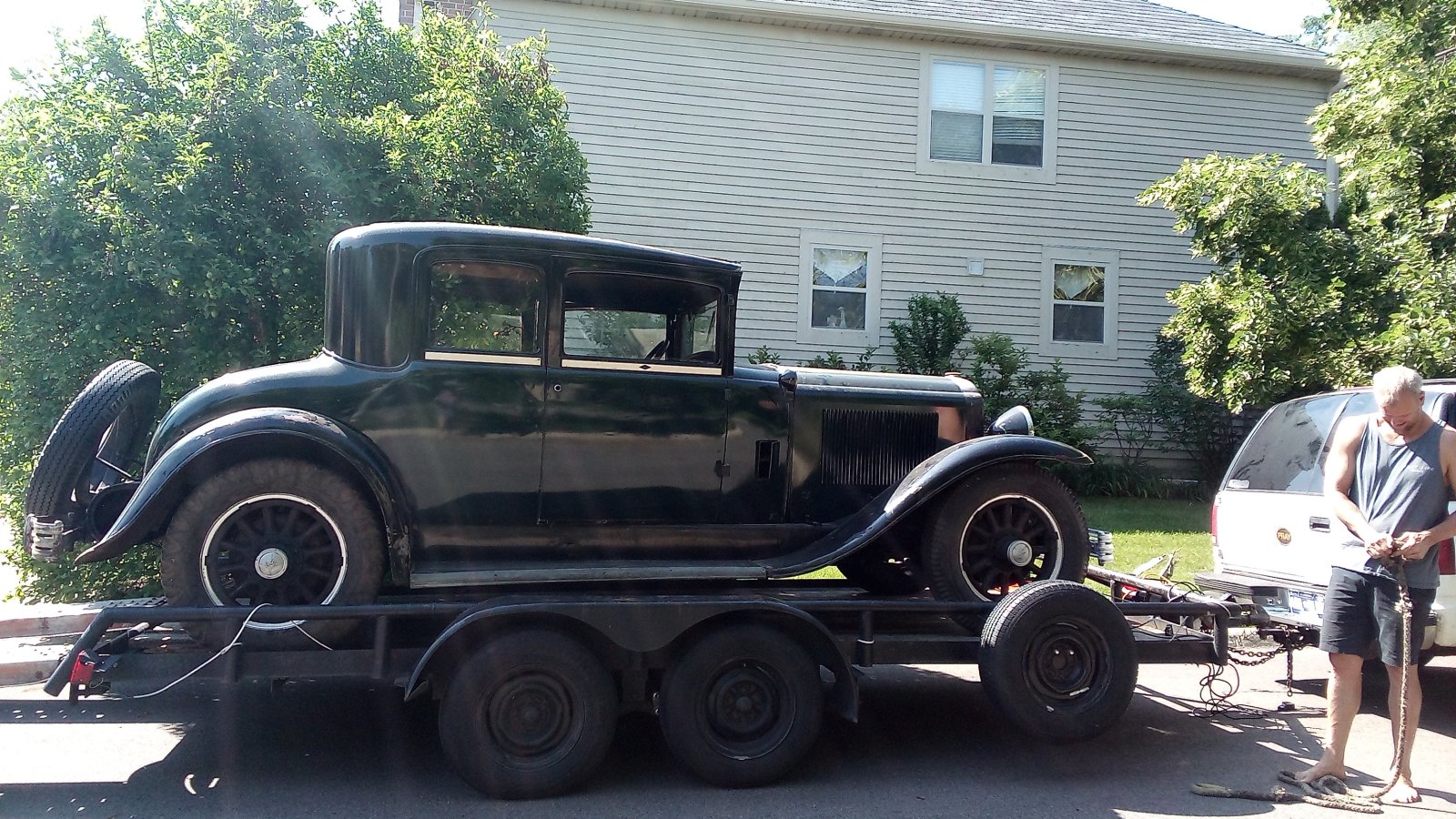 Just traded and got the new ride home. 1929 Buick 5 passenger coupe. I'm used to Ford's so being around this, dang she is big! My speedster has about a 90 inch wheelbase, this is 129! She is going to make an awesome tow rig for the speedster. I loaded with the winch (didn't want the previous owner to remember it might run) but managed to put in a can (fuel tank is dead) with a hose and drive her off the trailer. Someone had to just try it out. . .