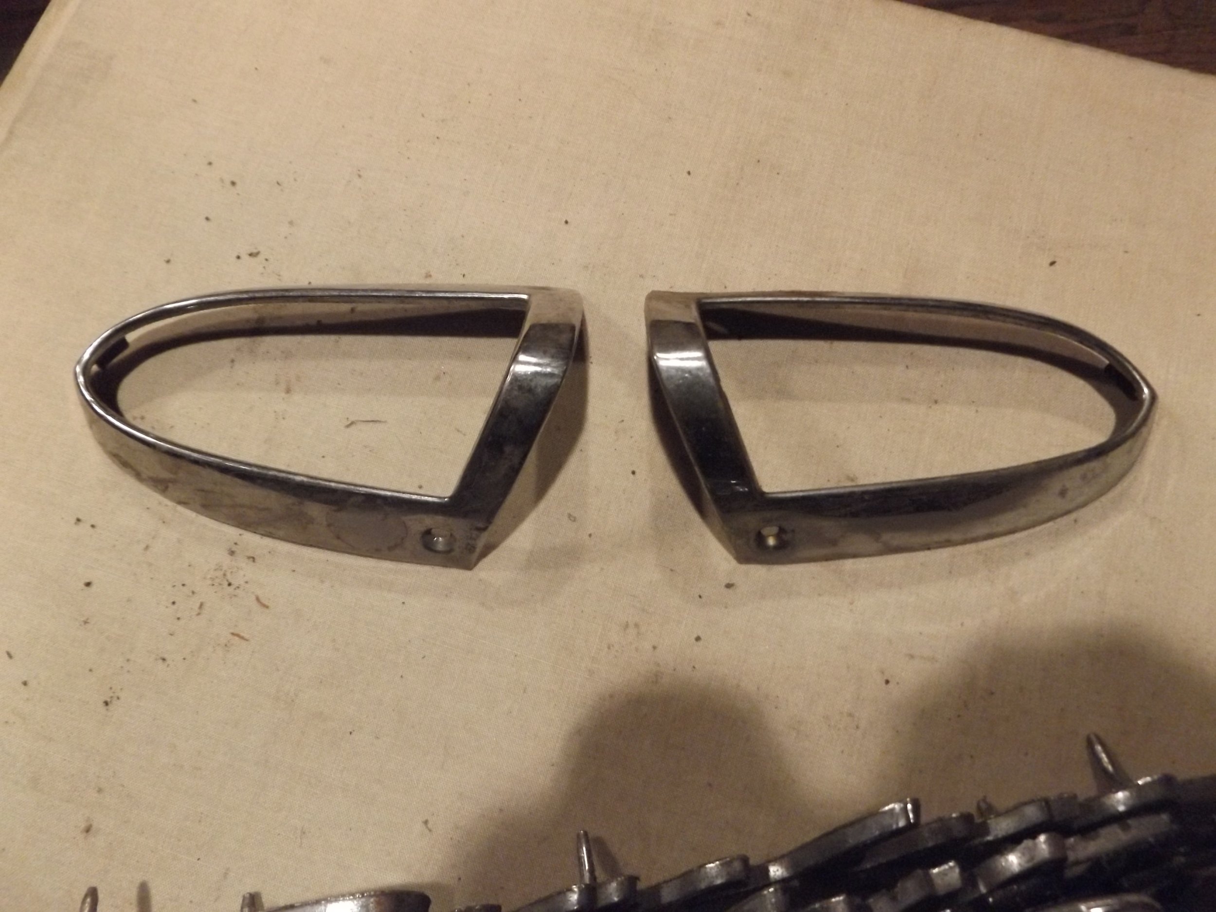 aren't these 49 Ford parking light bezels? They do match that linked ebay listing but I don't think that seller has a clue what they're selling. Pretty sure the grille is a 55 or 56 Mercury piece, not sure if they're different between the 2 years.