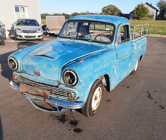 Bought this 1964 Austin 1/2 ton pickup some weeks ago. Did not need another project but at 600,- I could not pass. It's LHD so I guess this makes it quite rare. It has a lot of dings and dents from a hard working life and the cabin floor, tailgate and rockers are shot, but otherwise it's quite solid. Those can be built into nice little customs so that's the way I want to go. (pics were made by previous owner last summer):
