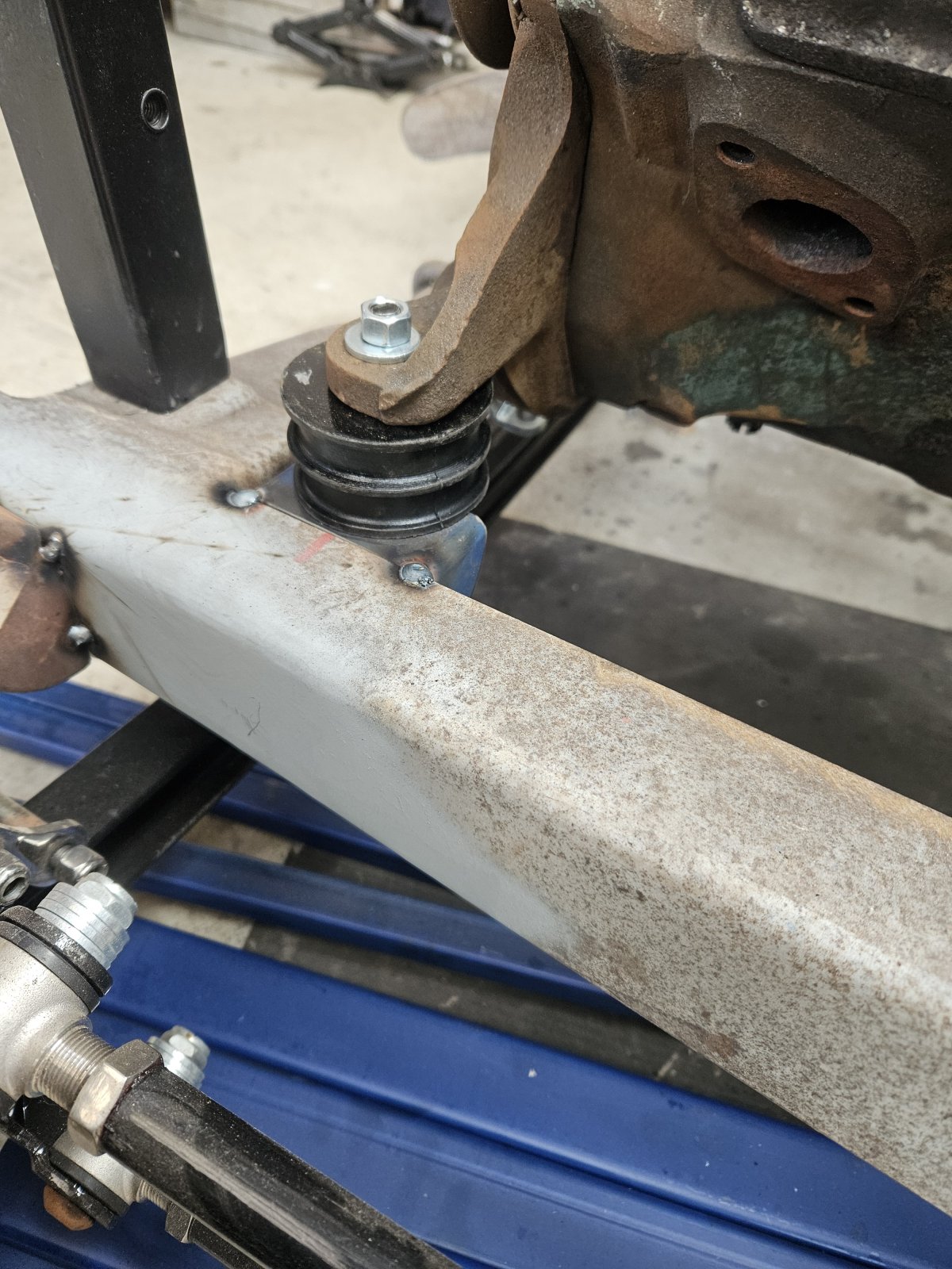 Had an interstate trip for work this week, and had the opportunity to pick up a front spring the steering arms while i was there. With a little creative packing, they made the trip home on the plane as luggage. With the spring and arms installed, I can progress with mounting the steering box.