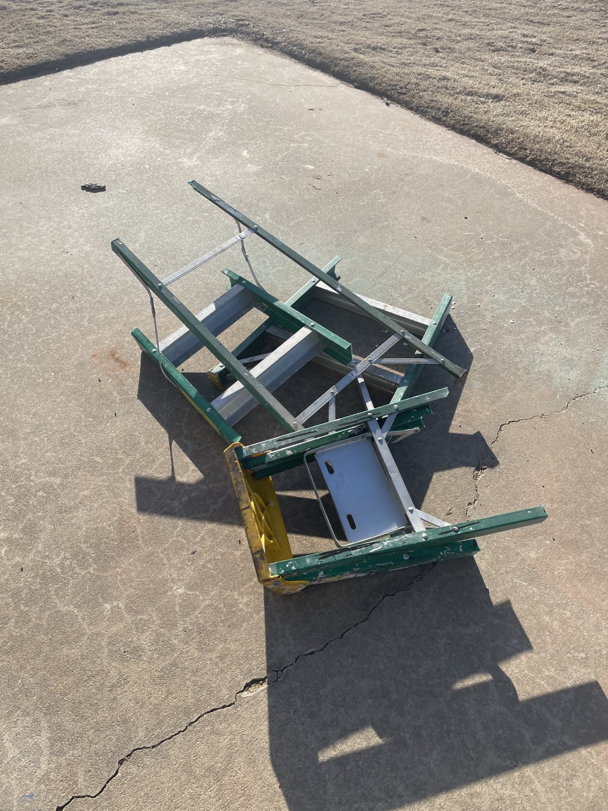 We are closing this bad boy out. I was released by my neuro surgeon this week and was told that he never wanted to see me again. . Thanks to everyone that wished me well. It was truly appreciated. I am not responsible for what I may have said in those 3 weeks that I was medicated. I honestly don’t remember much. Here a few pics. The scene of the crime, the ladder before and after. Meet Mr Sawzall biotch.