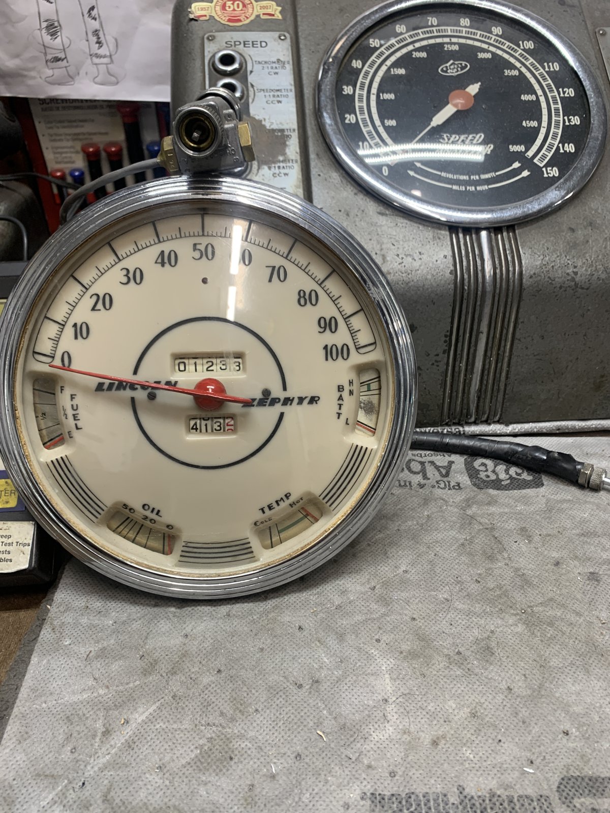 The 1935 Dodge Floating Power speedometer is big at 6” but the Zephyr speedometer makes it look small. IMG_3509.jpeg IMG_3510.jpeg