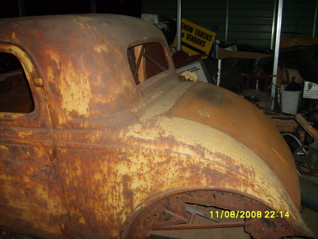 Well my dad's had the body for about 4 years (I think, give or take a year). If anyone ever goes to NSRA events it was at the Nationals in Louisville (2004 I think). The guy had it on display in the vendor building. He sold glass bodies and his selling point was you could spend a***** load of money fixing a rough car like this or buy a slick glass car. I'm sure she came out of a junkyard somewhere but my old man was happy to get her. This is the second 3 window he has owned, the first never got fixed. He sold it before I was born. It was a 3 window with a 5 window bottom someone grafted on to it to fix it. It still sitting but you can't buy it. I'm laying like a snake in the grass for it.