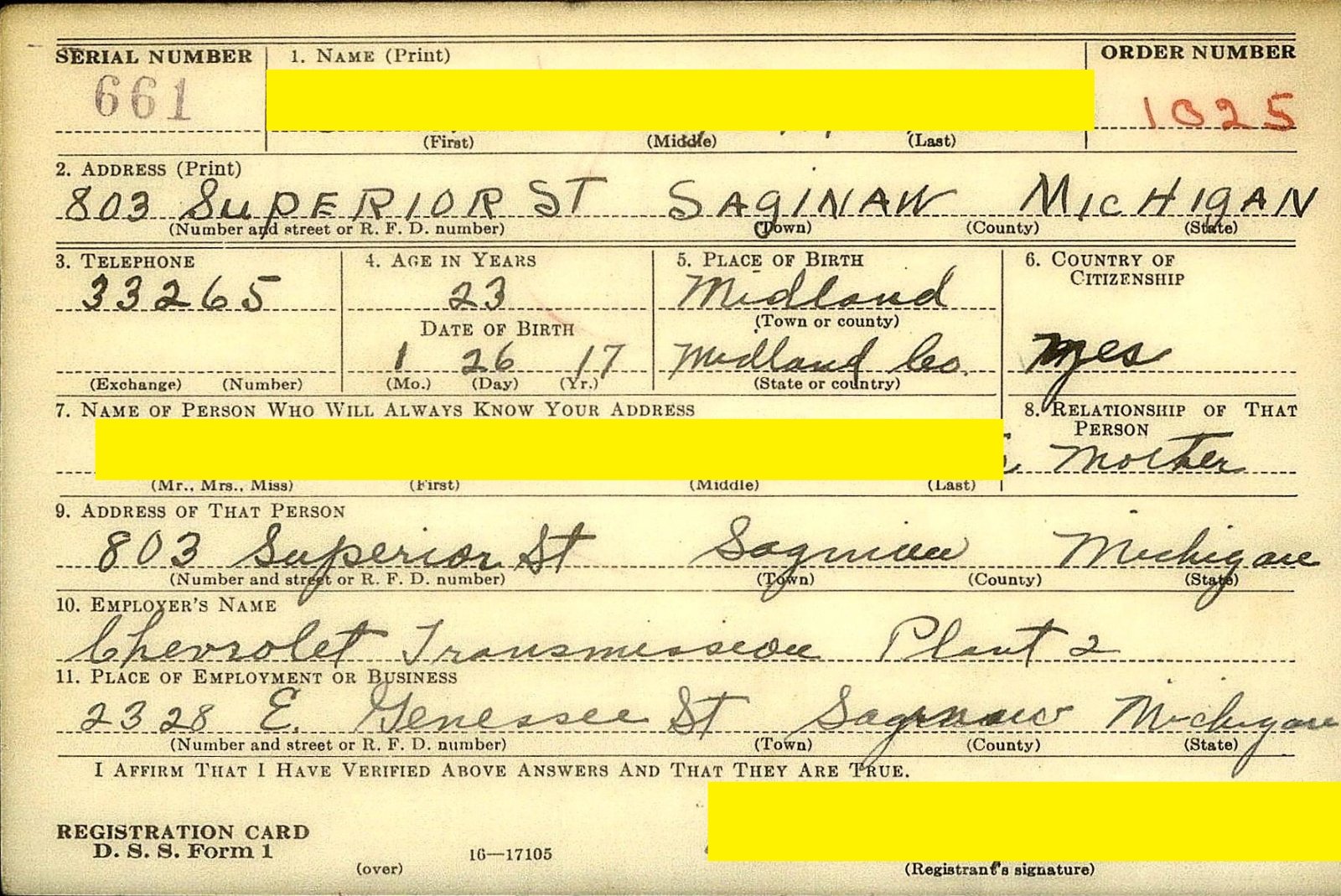 My sister has been doing family history. She came across my dad's WWII draft card. He was a tool maker there.