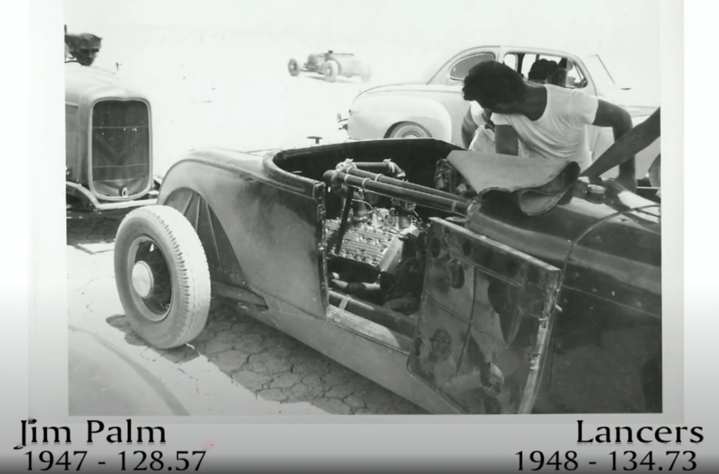 American Hot Rod Foundation December 3, 2023 · PHOTO OF THE DAY , , Jim Palm of the Lancers ran his Class B Roadster during the 1947 S.C.T.A. season. It was a little different than most of the cars in his class as the Merc flattie was sitting behind him. At the first meet on June 13, Mr Palm ran 123.62 mph for a second in class. At the July 6th meet, he ran 121.78 mph for a 4th in class. The August 10th meet was pushed to the 31st due to Mother Nature, and our boy ran 126.22 mph for a second in class. At the September 21 meet, Jim grabbed first place with a speed of 128.57 mph. At the last meet of the year on October 19th, it all fell apart as he only ran 115.83 mph for something like 18th fastest and finished the year in 7th place in the points standings. On a high point, his club finished as the top dog for the year.