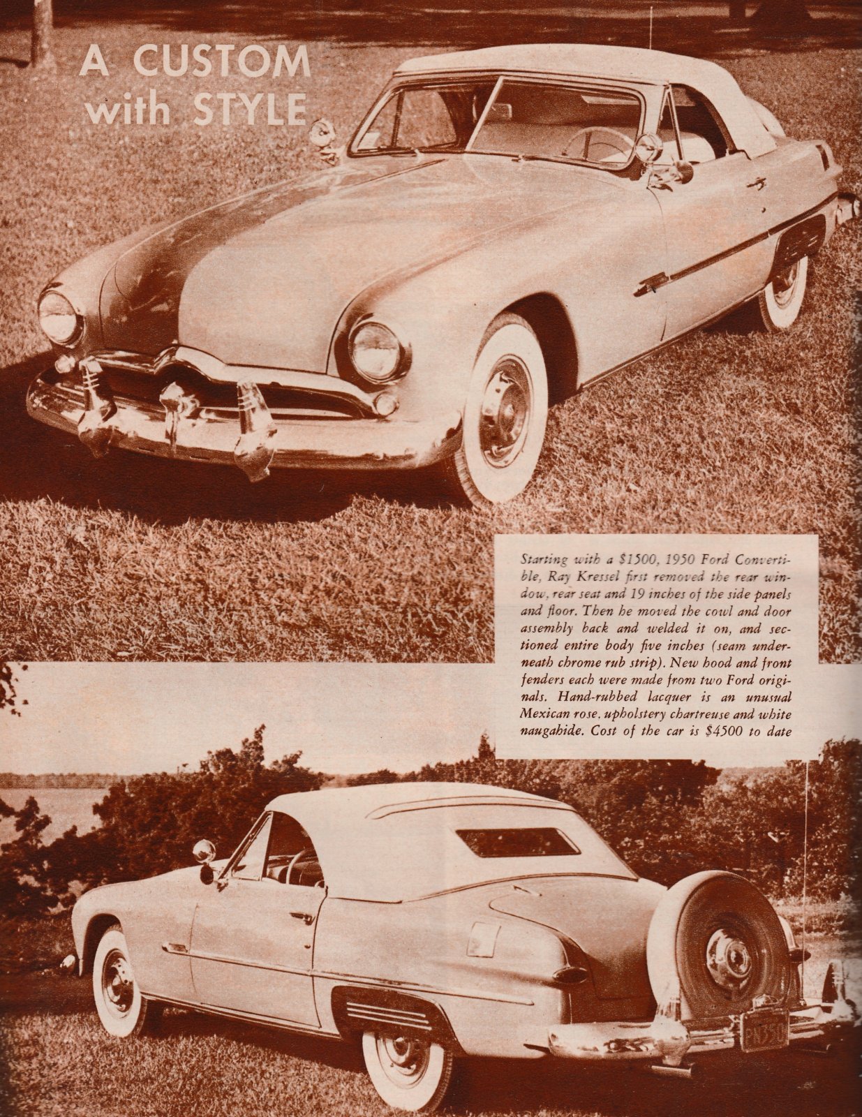 It's an interesting car...rather ugly, but he tried. Maybe if they had photoshop back then, it would have turned out differently? Or if he'd taken the time to take some pictures first, cut them up and move the pieces around like paper dolls, and see how it would look? It would be nice to have a few large, clear pictures of it, including a side view, so we can figure out just what was done to make it.