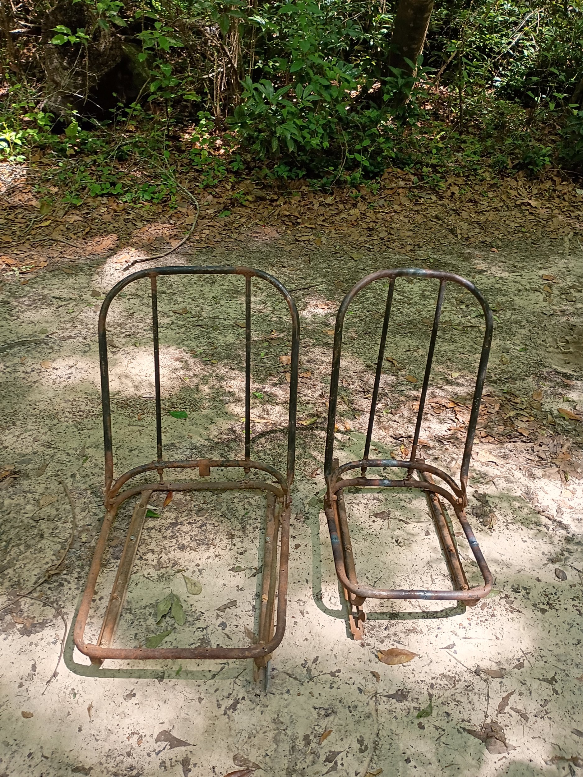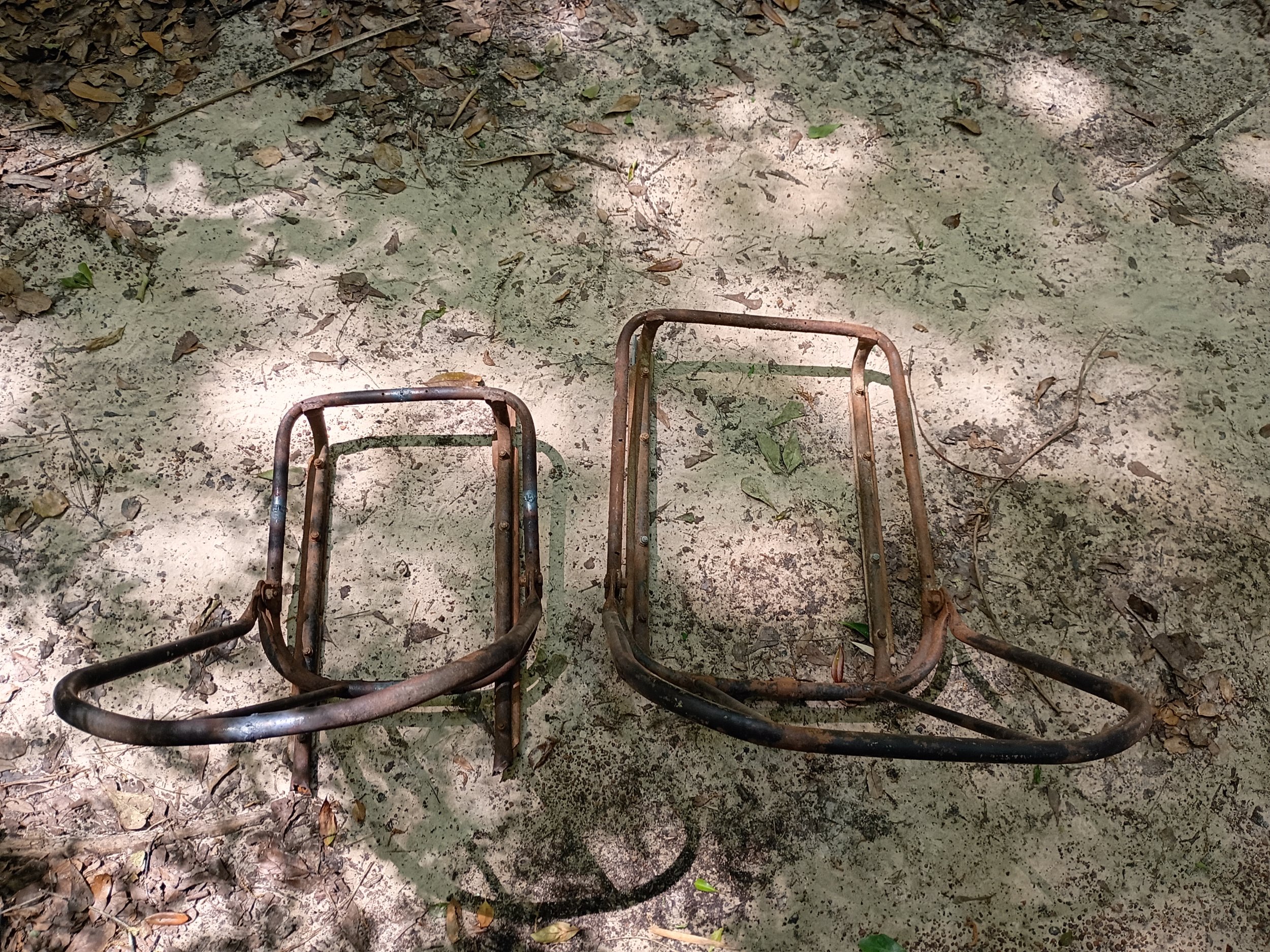 As often happens with new things I'm learning to do, the second seat was easier to weave. I decided to reduce the number of weft (crossways, hope I'm using that term right) strands. On the first seat, the base got pretty tight from packing all of those in there. Cutting back on them saves time and material. Kept me from having to order more twine. I attached the cushions to the driver's seat (the second one I did) with buttons. I just tied them through to the woven twine on the bottom and to the upright tubes on the backs with some heavy duty waxed Dacron thread I use for sewing leather sheaths and holsters. Seems to have worked fine. I will have to find some more buttons, though. Hopefully ones that match pretty well. Anyway, I think these seats should be useable.