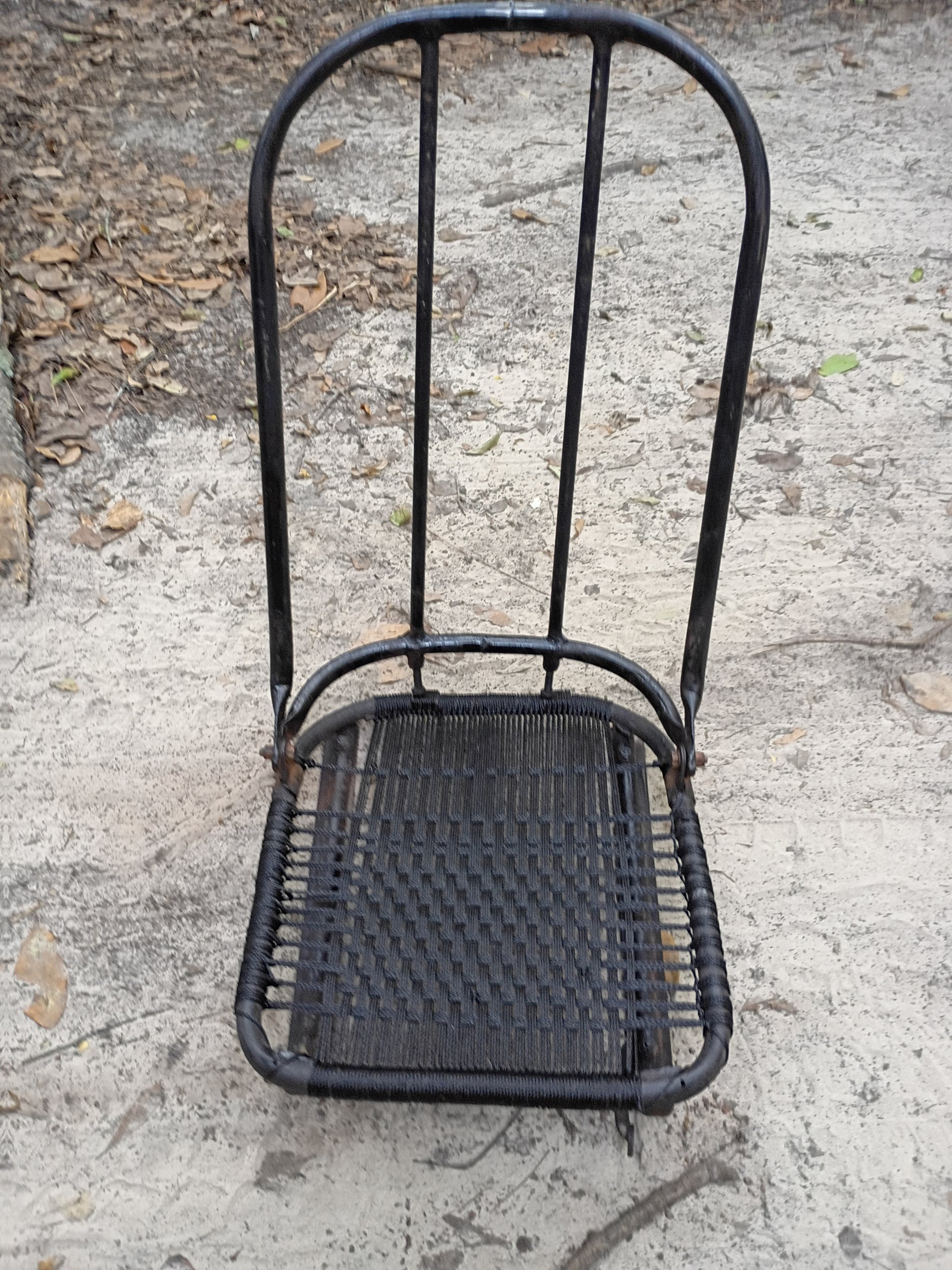 Well, I think this will work out, after all. I finished weaving the first seat bottom. It has a lot of unwoven spaces because I had to work around brackets and curved tubing, but it's tight and strong.