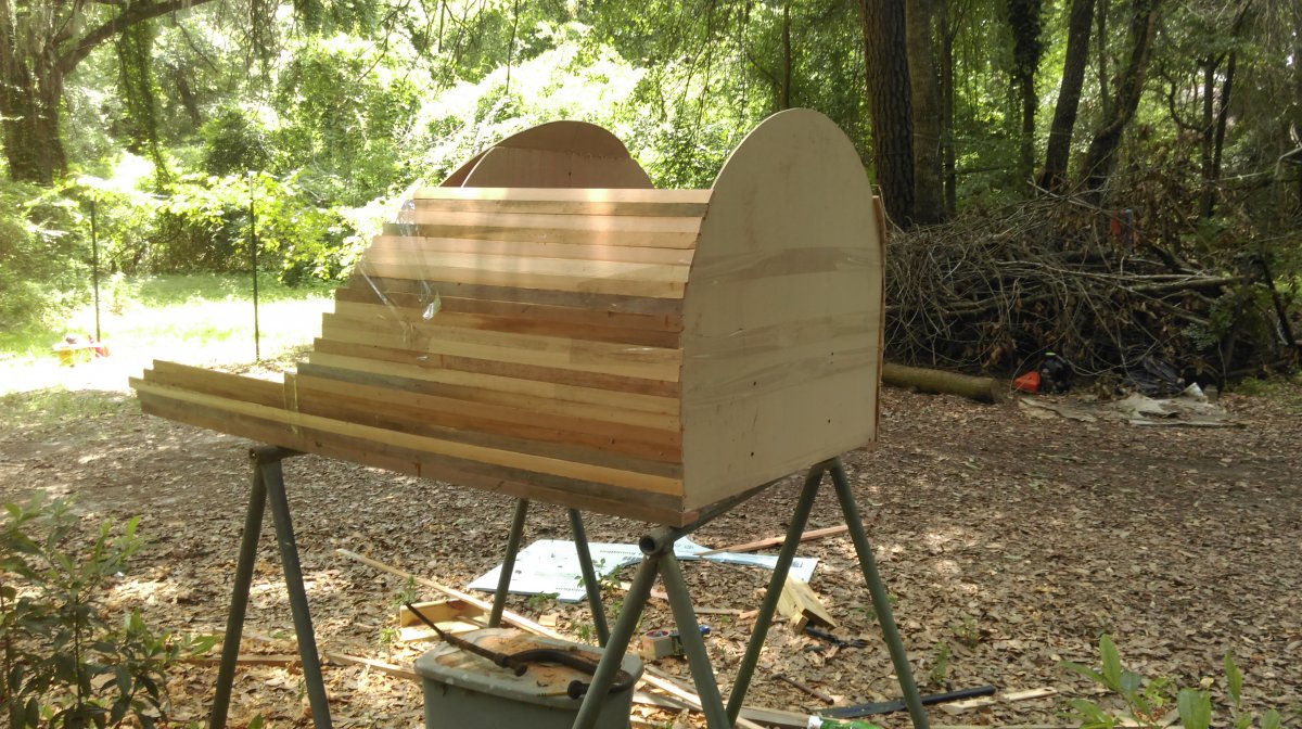 Nibbled away at the seats some more this morning. Finishing out the front edges. I'm going to add some more bracing underneath. Sorry about the overexposed pictures. It's a real pretty day here. Obviously, the vertical parts will get trimmed. I'm going to leave 1/2" or so proud to keep whatever cushion I end up using from slipping forward. The ends are so raggedy because they are what I trimmed from the excessive height when I made the seat backs.