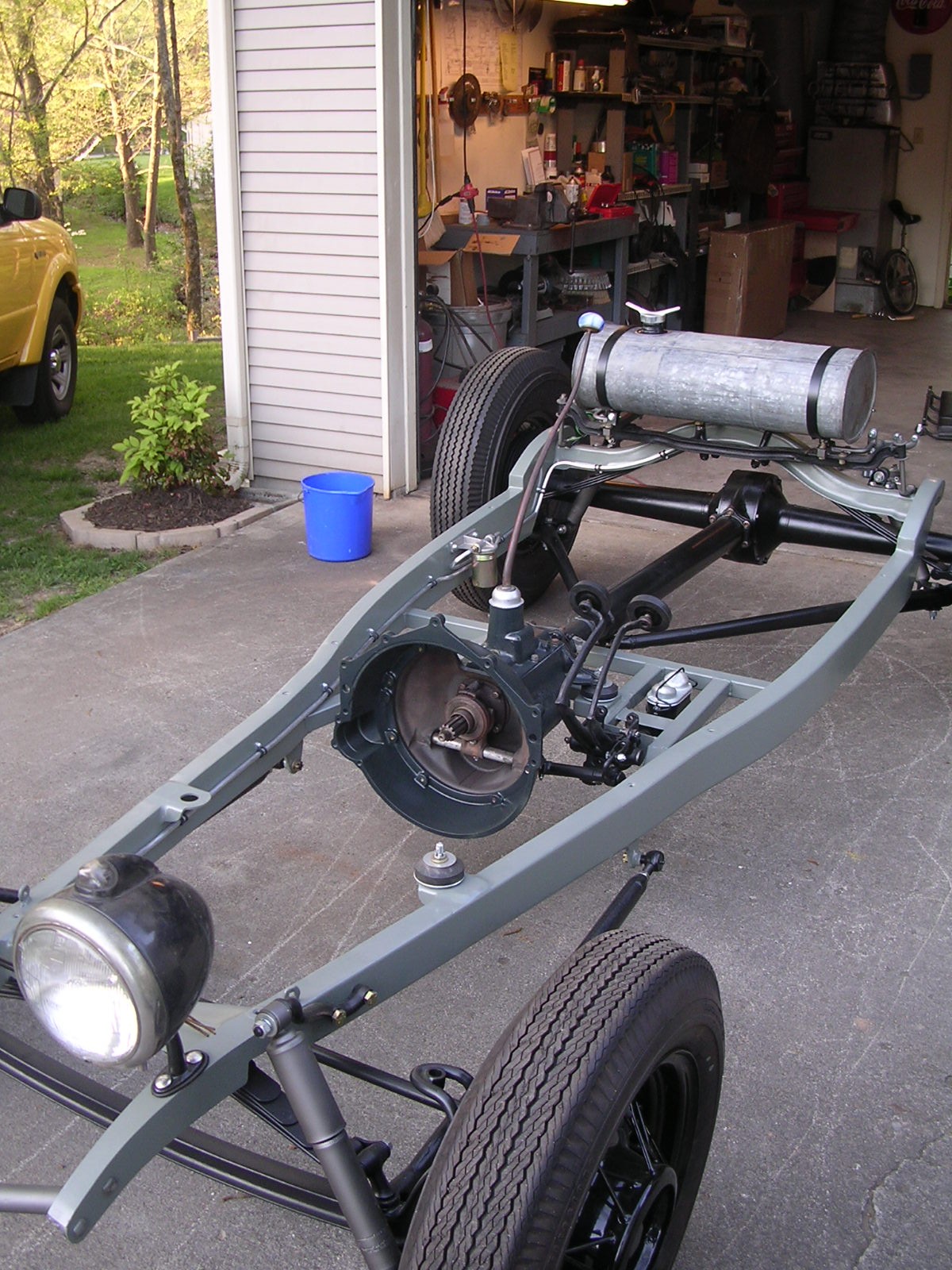 I used a '40 rear & torque tube on my RPU. Shortened it in front of the radius rod lug. Left the bearing inside alone. I shortened one end of the driveshaft & had it resplined at a local machine shop. Don't beat yourself up trying to find a '33-'34. Use what you have. It'll work just fine. JH