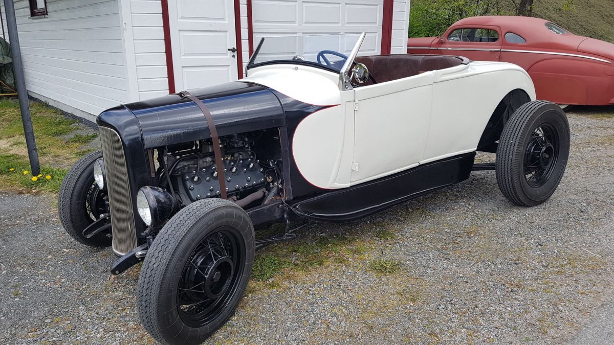 This is my favorite Roadster because it was mine. I owned this for several years and before I joined the HAMB. Thanks to "themoose" for the photoshop so I can post a pic of it. the paint/wheels took it out of the HAMB style/parameters. Pretty standard IMO, 29 body, 32 nose, bolt on top and snap in windows I made for our Wi. weather, 32 rails, Pete & Jake front end, 9" Ford rear w/3:55 posi, mild 355, TH400 trans, fun car, hauled ass, but too small/uncomfortable for me or I got too fat and old LOL. traded for unfinished 32 3 window. 29 roadsterflat black.jpg