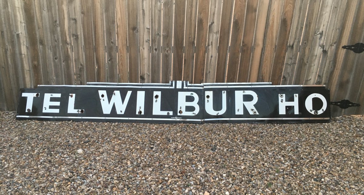 Just sent this one off for neon. Wilbur Hotel out of Corbin KY; someone separated the marquee ends at some point but with some cutting this thing will display great. 13’ of Black porcelain and Art Deco fonts are hard to beat.