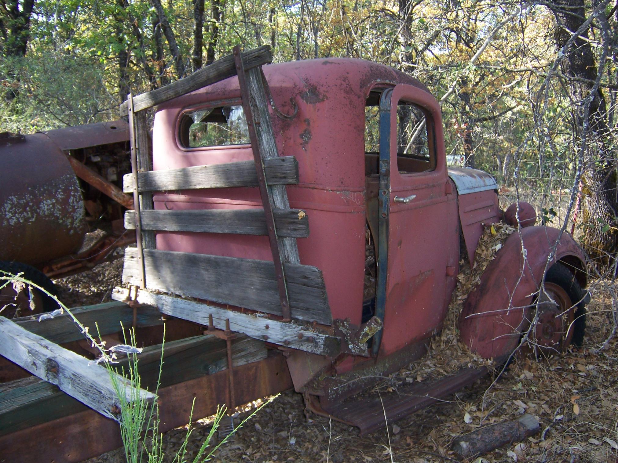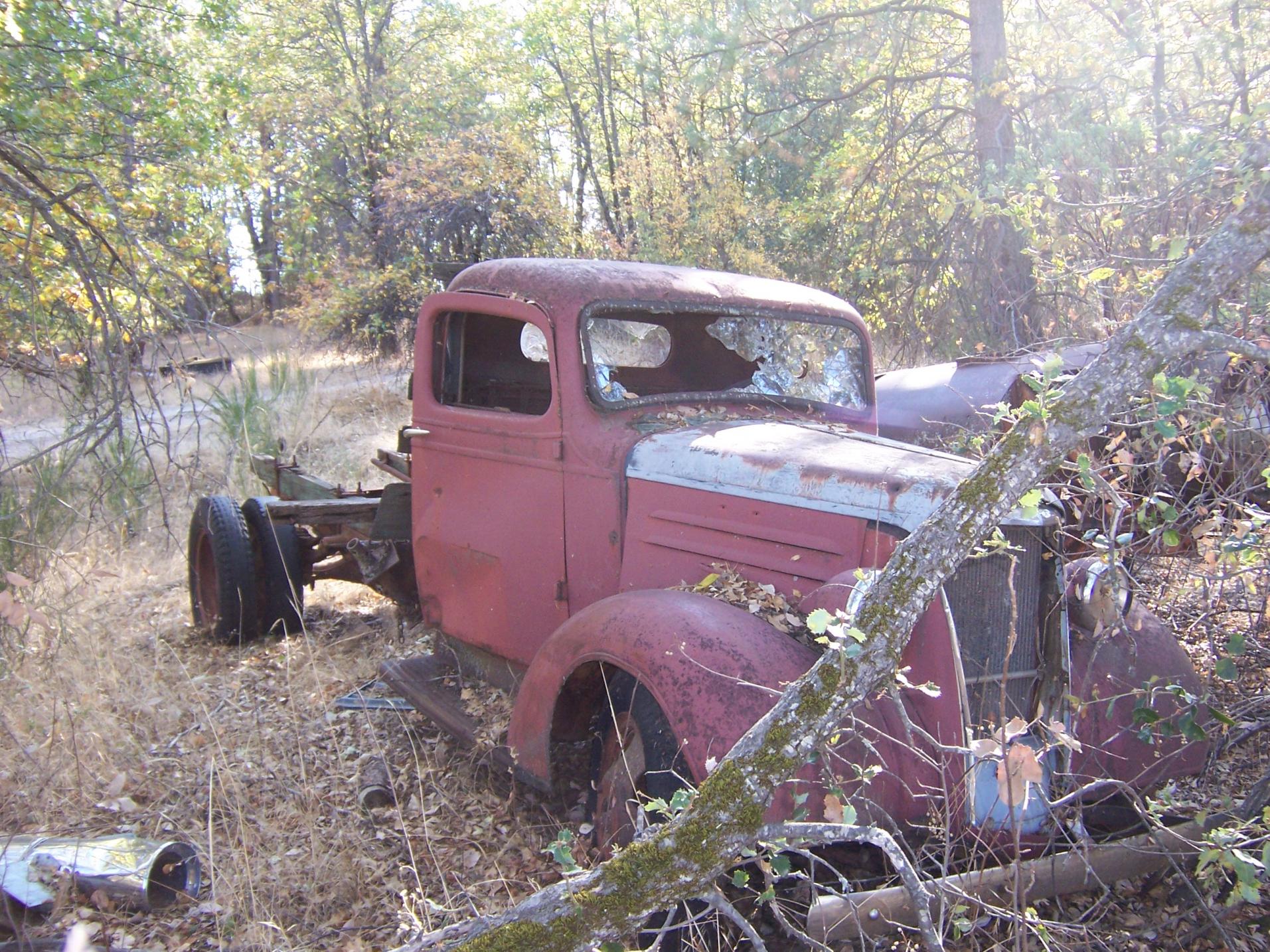 This 37' Chevy truck is sitting on the other side of my property fence. I approached the owner several years ago about the truck, he told me it was his fathers who died and he learned how to drive in it. He died a few years ago and I again approached the family and it was held in trust for the third generation son. Since then, it has been shot up, windows smashed out, and rats and mulch have done the rest. So SAD.