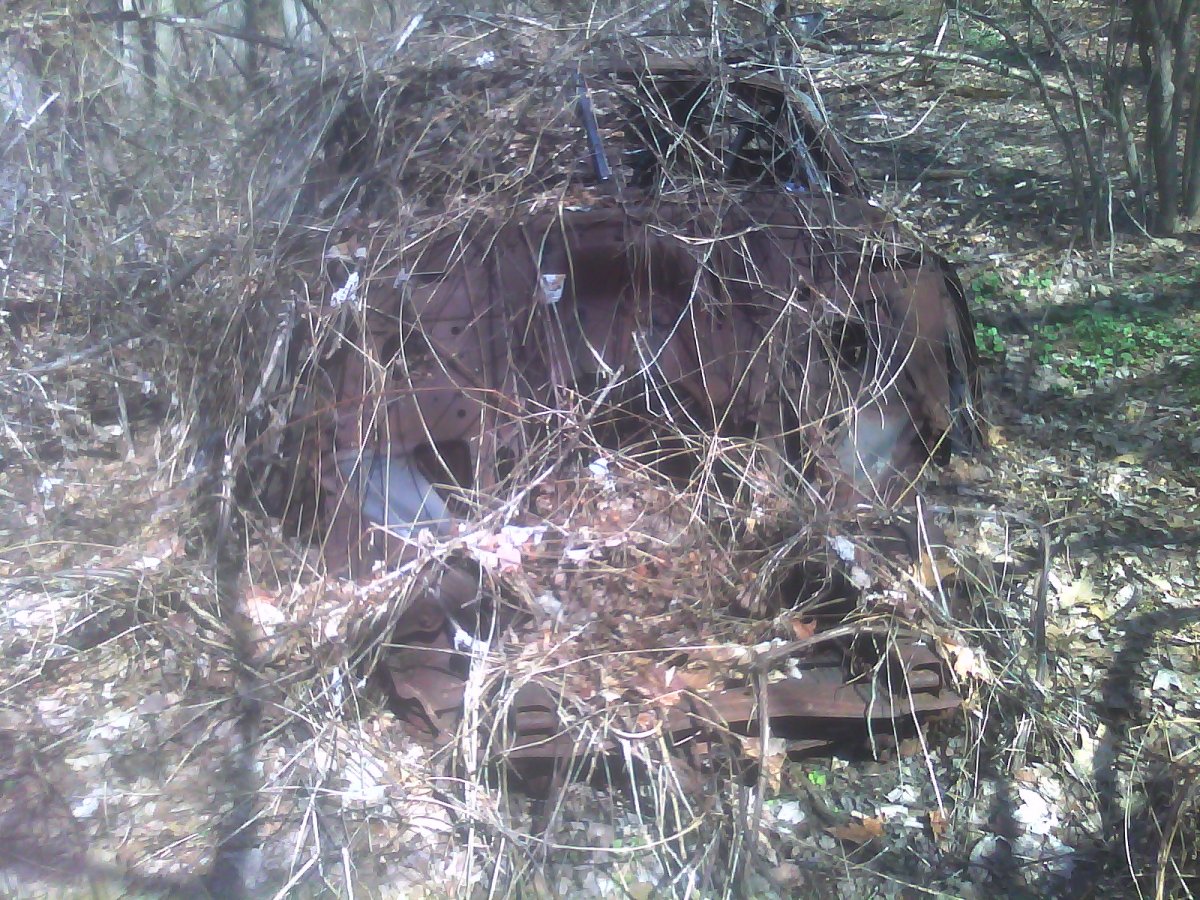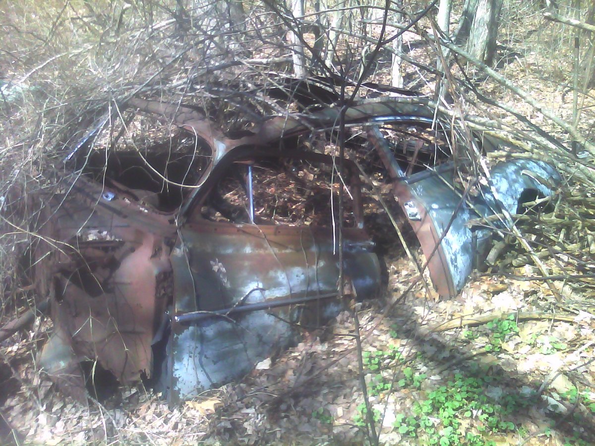 This 50 Chevy Fleetline was my 1st car back in the early 60's. Engine blew and because I never really like the body style I towed it into the middle of our woods and forgot about it. One of my buddies reminded me about it the other day so I took a hike and found it. Looks like vandals and mother nature have done some customizing over the years...:D