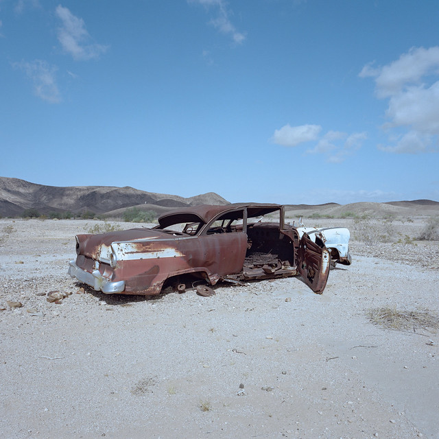 I think this poor ‘56 Ford Victoria got taken for a joy ride in the Mojave desert years ago and then got torched.