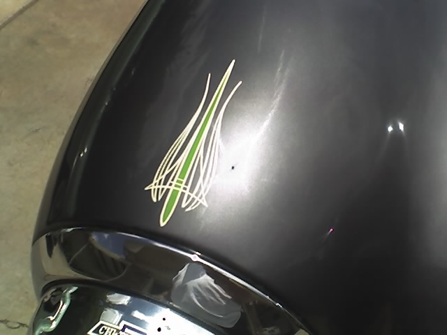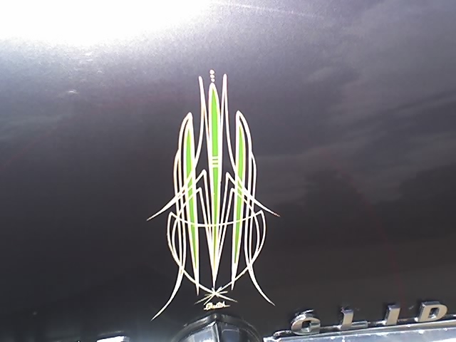 I had him stripe my caddy before I moved from Cali to Texas. Was really laid back, let me wonder around his shop and look at all his projects. The first thing he did was hide a scratch I had on top of my fender by the headlights with tear drop... I was like good idea!!! Wish I could find a stripper in the Lubbock area that could do this kind of work.... The designes look like Rockets that are blasting off...especially the one on the trunk lid. Ditto on the scallops in his work too, different and cool