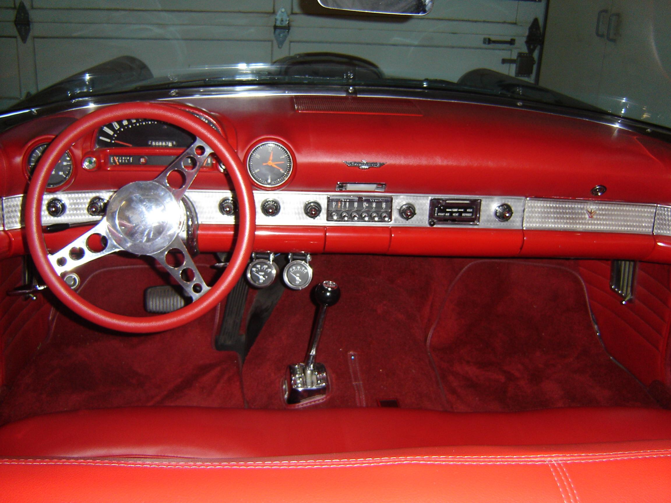 A stock '55 Thunderbird wheel is a really valuable piece, I wouldn't suggest cutting it down, although that is an option. I'd probably keep the stock one, just set it aside and use a 60's era steering wheel, a '65 Mustang wheel is nice looking, maybe put a Thunderbird emblem in the center to replace the horse.