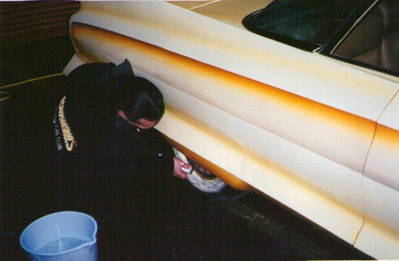Hey Guys!! Been a while for me to be on here!! I saw the Gene Winfield thread and thought I would add to it with a continuation of TheRev's 2 cents. I remember discussing fades and shaving/decking etc etc with Gene. He is a very polite man. I was impressed with him being interested in what I was doing with my 64 Wildcat at the time. (air ride) We discuss set ups and roof lines and it went on from there to..heylets clean your car!!! hehe Here are the only 2 pics I have on my pc of that great day. Thanks Rev...was a cool time!!..