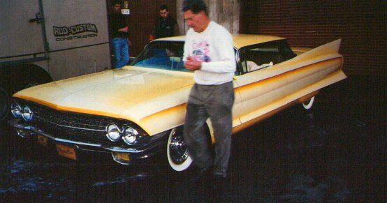 he's kool..he was here a few years back with his '61 caddy so he drives it off his trailer,scratchs the shit outta it.he parks it in the dupont paint display area..the car is full of dirt,and grime,so my buddy offers to wax the whole car for him,never mind he still had to clean his own ride,,what a great way to get a super close look at his work...and i talked to him for a bit,and look at what he is sellin'the whole time he was stairing at my wifes tits!!!!!hahahaha thats my winfield story....